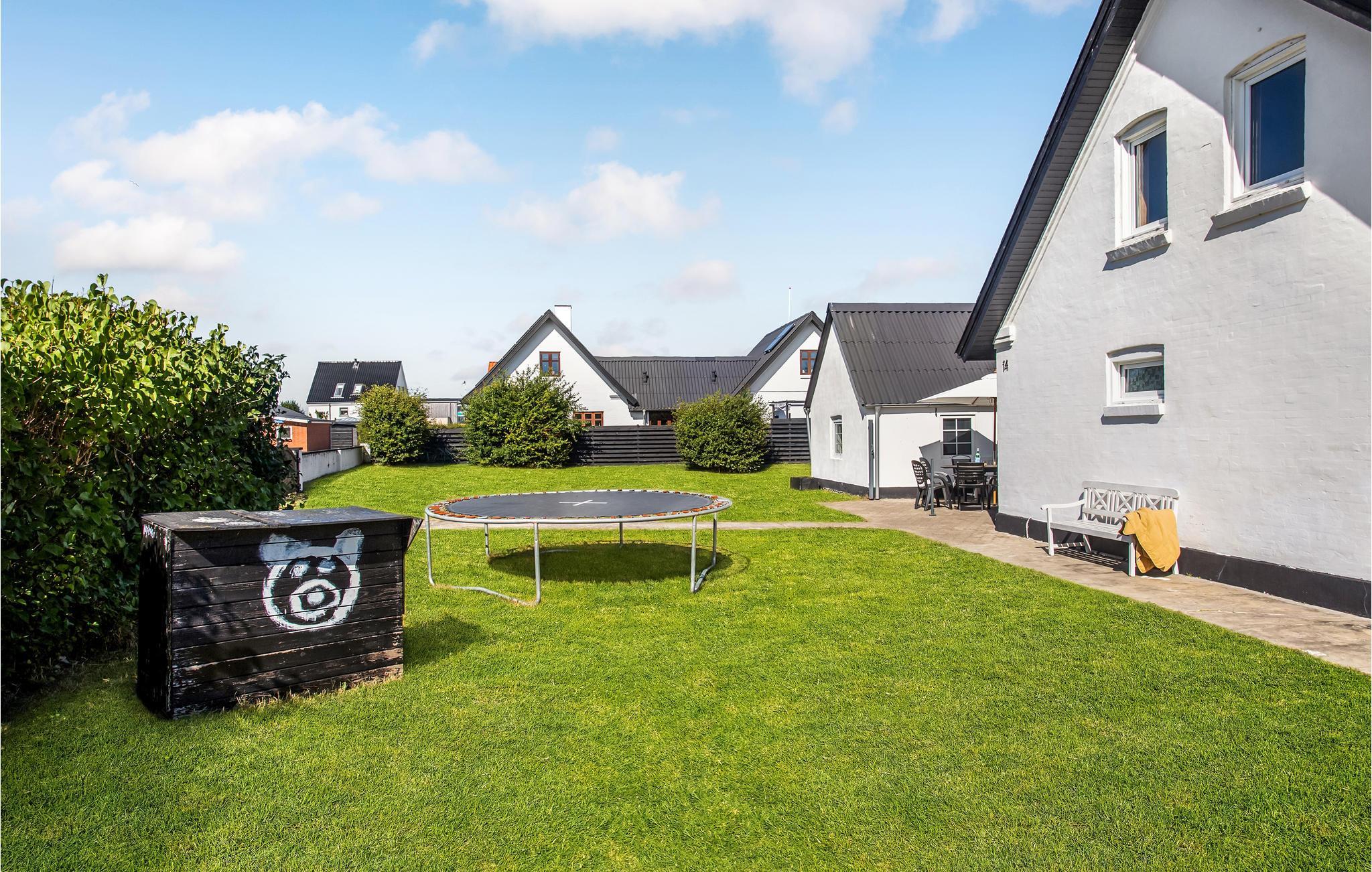 Nyd den friske luft og de milde sommeraftener på terrassen. Til huset hører en skøn græsplæne, hvor børnene kan spille bold og give den gas på trampolinen.