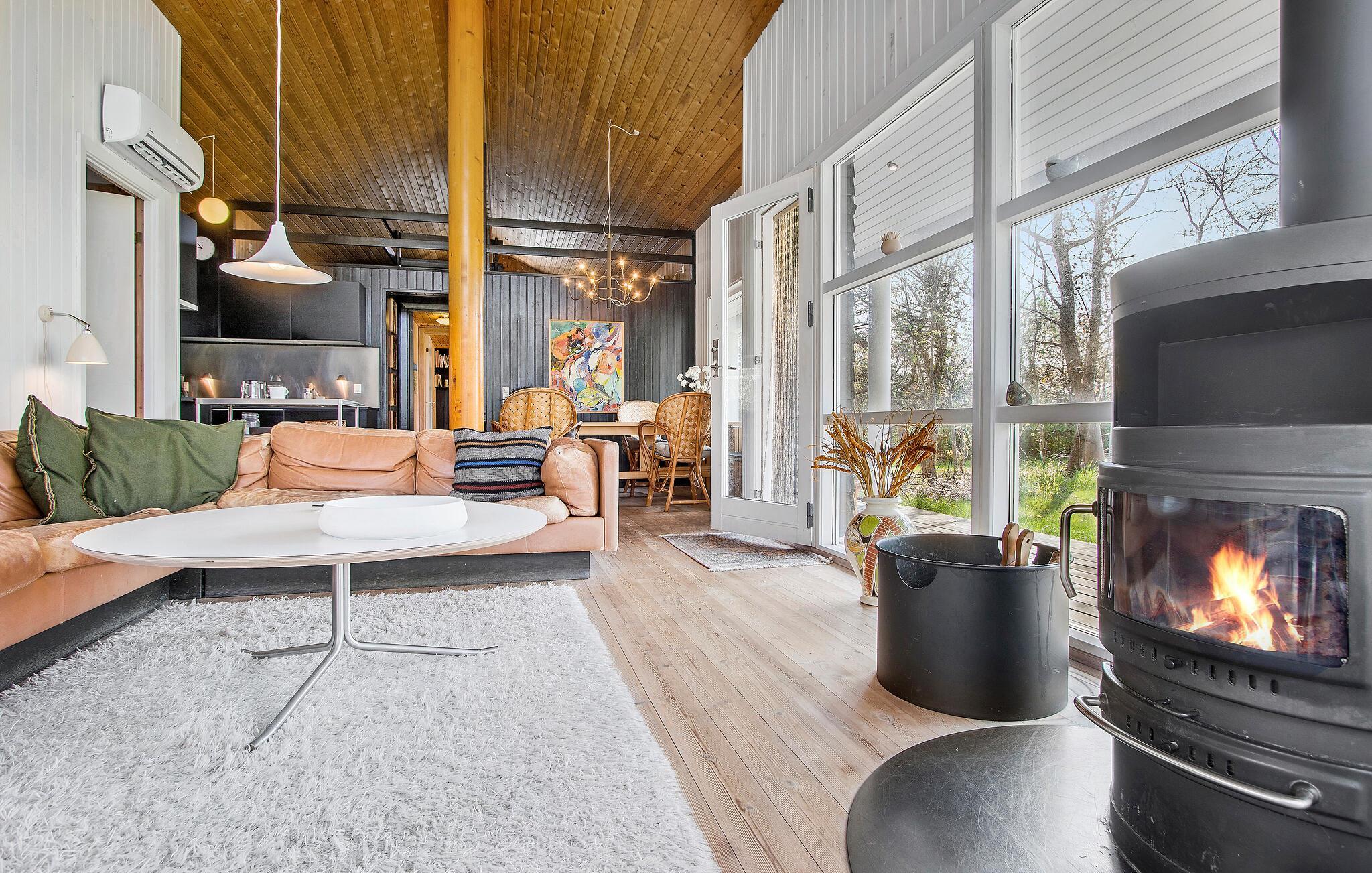 Tag den udvidede familie under armen og rejs til Nordjylland, hvor der venter jer en skøn boligoplevelse i dette flotte hus. Huset er indrettet med gennemtænkte rumløsninger, et komfortabelt møblement og sans for detaljen, der kommer til udtryk i de mange fine elementer i udsmykningen. Den åbne stue har et lyst og luftigt udtryk med højt til loftet og store vinduespartier, der lader dagslyset sive ind og samtidig giver en skøn udsigt til haven. Hvis vejret bider lidt, kan I tænde op i brændeovnen, nyde dens blide, knitrende ild og lade aftenen gå på hæld med brætspil eller filmhygge, inden I går til køjs i huset eller i annekset.