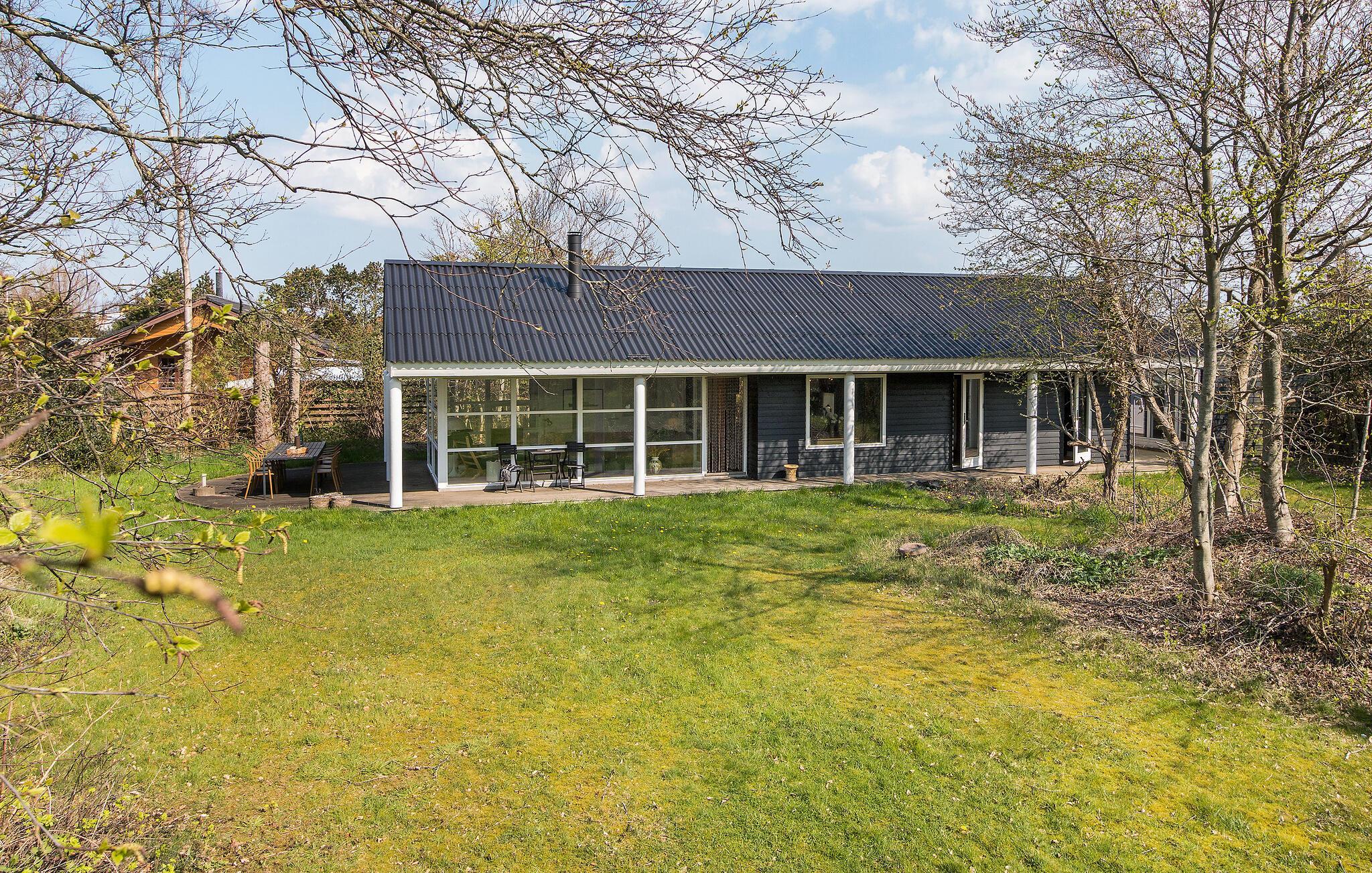 Arkitekttegnet feriehus tæt på børnevenlig sandstrand i Strandby med skøn have og moderne faciliteter.