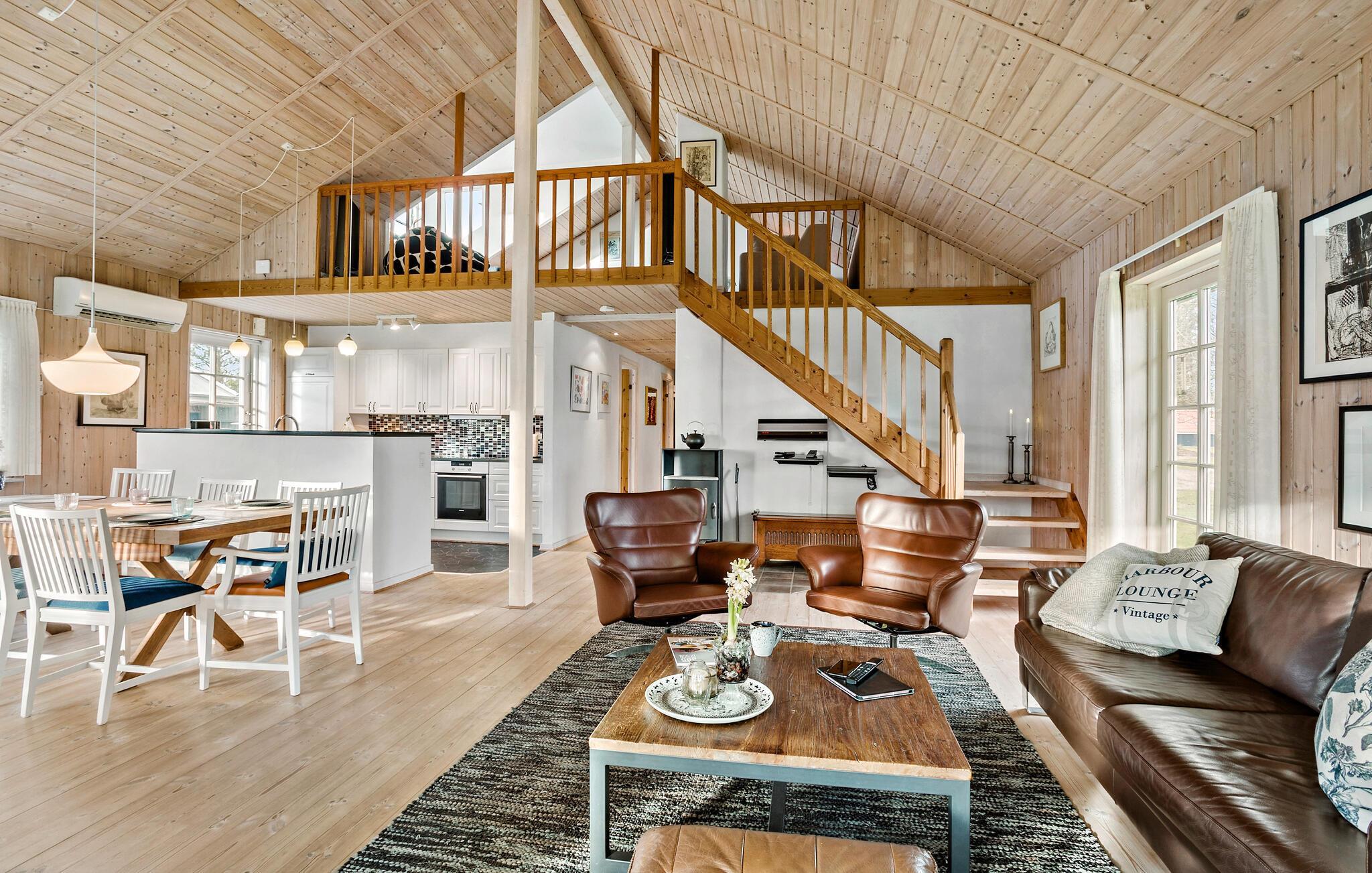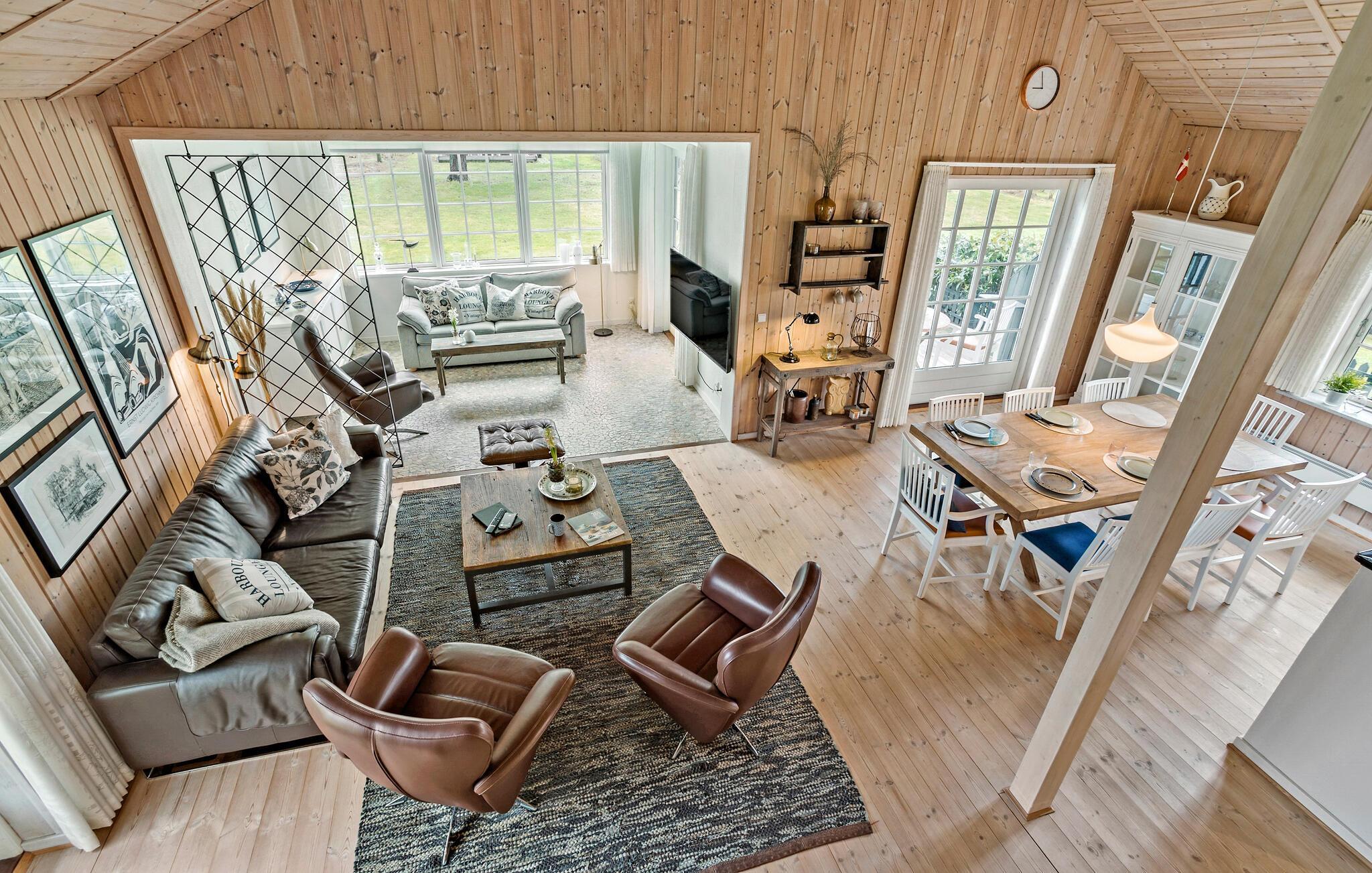 Tag en velfortjent pause fra hverdagens stress og jag og lad ferien udfolde sig i smukke omgivelser i dette lækre træhus. Indretningen er på én gang varm og indbydende med højt til loftet, fremtrædende træpaneler og et dejligt lysindfald, der skaber en rolig og god atmosfære her. Den fine kunst på væggene gør det helt hjemligt, så tag jer blot god tid til madlavningen eller finde jer godt til rette med en bog i sofaen og nyd livet. På første sal finder I værelser og et hyggeligt loungeområde, hvor I kan nyde den gode udsigt til fjorden.