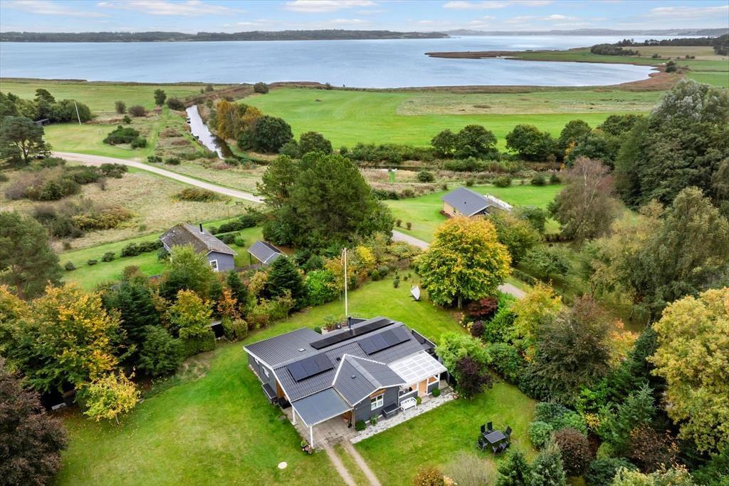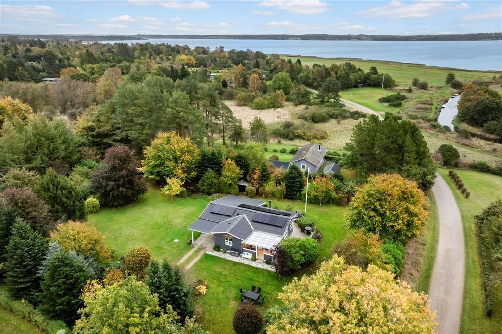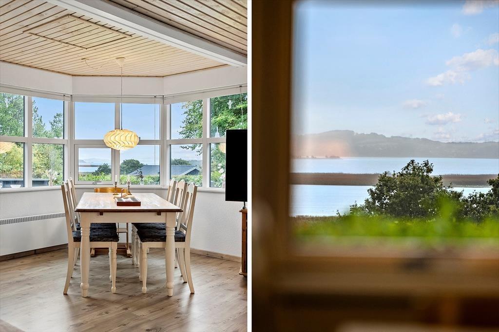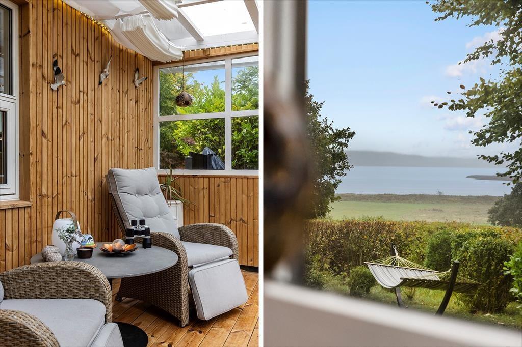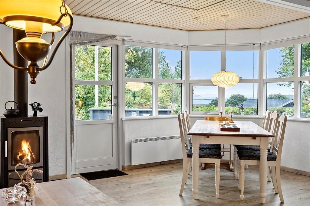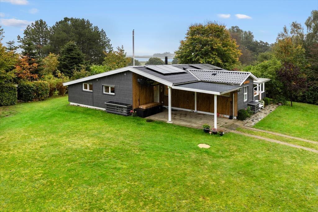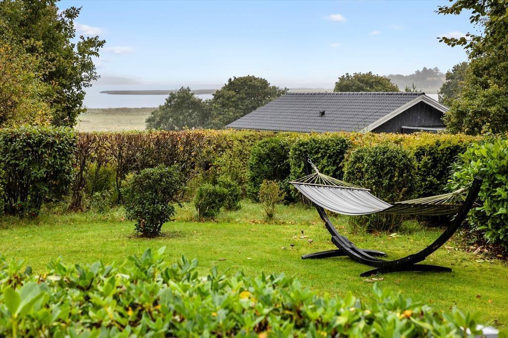 Hyggeligt sommerhus i Strandet ved Limfjorden med fjordudsigt, brændeovn og stor have med legeplads.