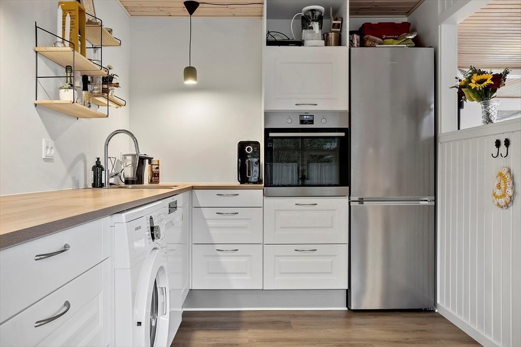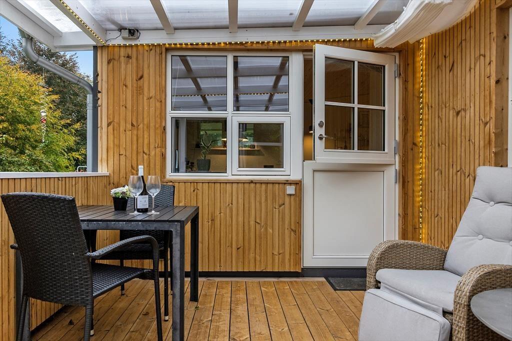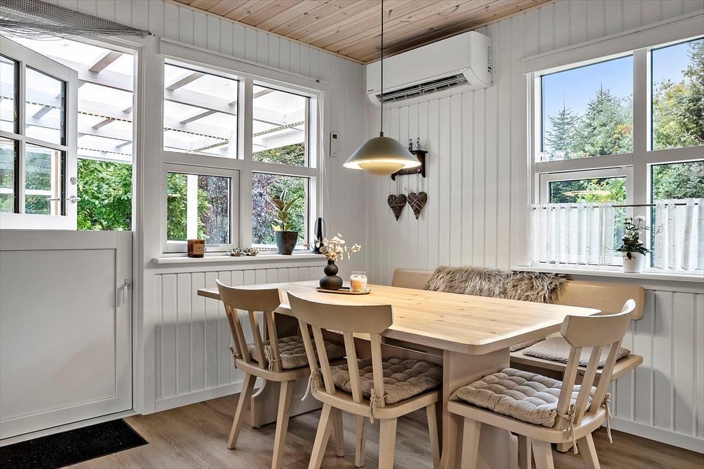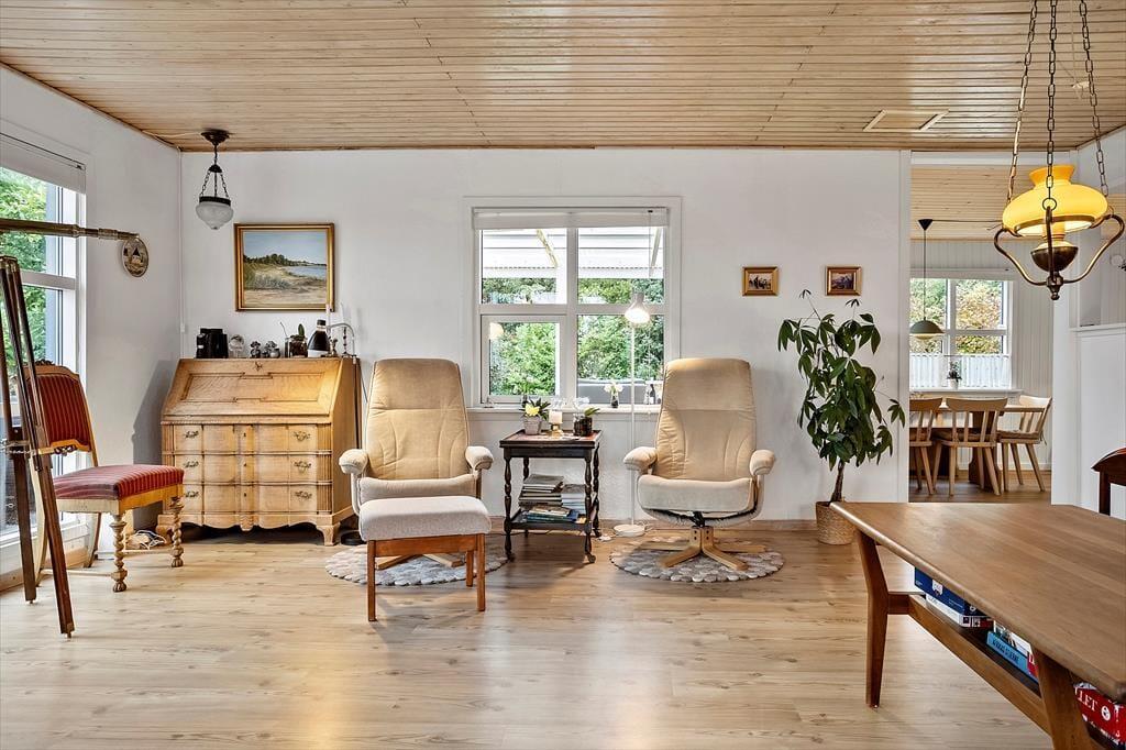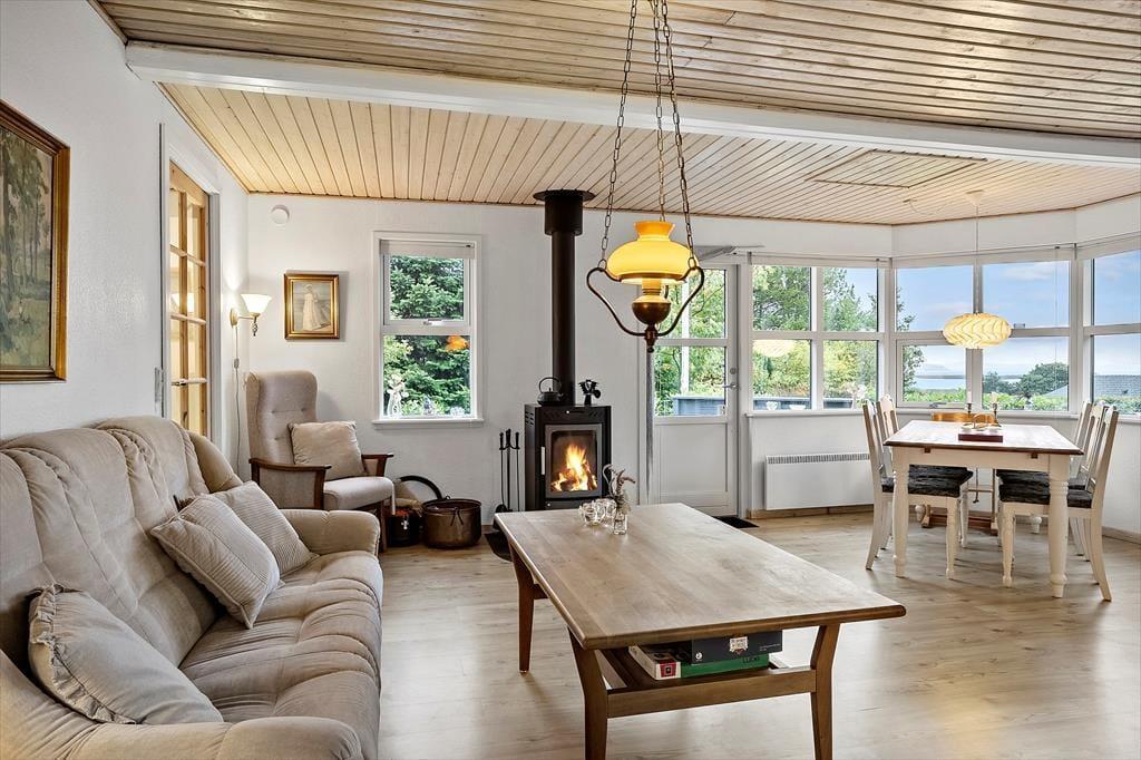 Sommerhus i Strandet, Limfjorden, med plads til 5 voksne og 1 børn. Der er en hyggelig indretning med bl.a. brændeovn, og du finder desuden vaskemaskine og opvaskemaskine i boligen.