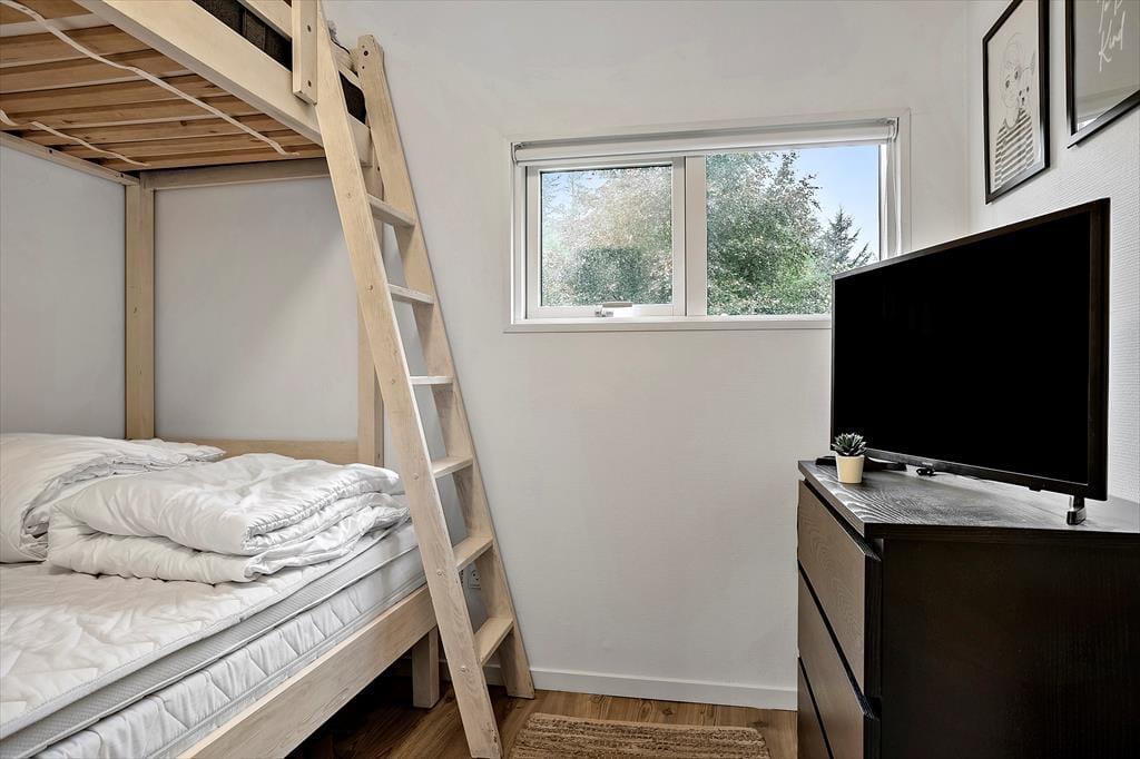 Boligen er på 92 m² og ligger på en 2.500 m² stor grund, hvor der bl.a. er gynge og sandkasse.
