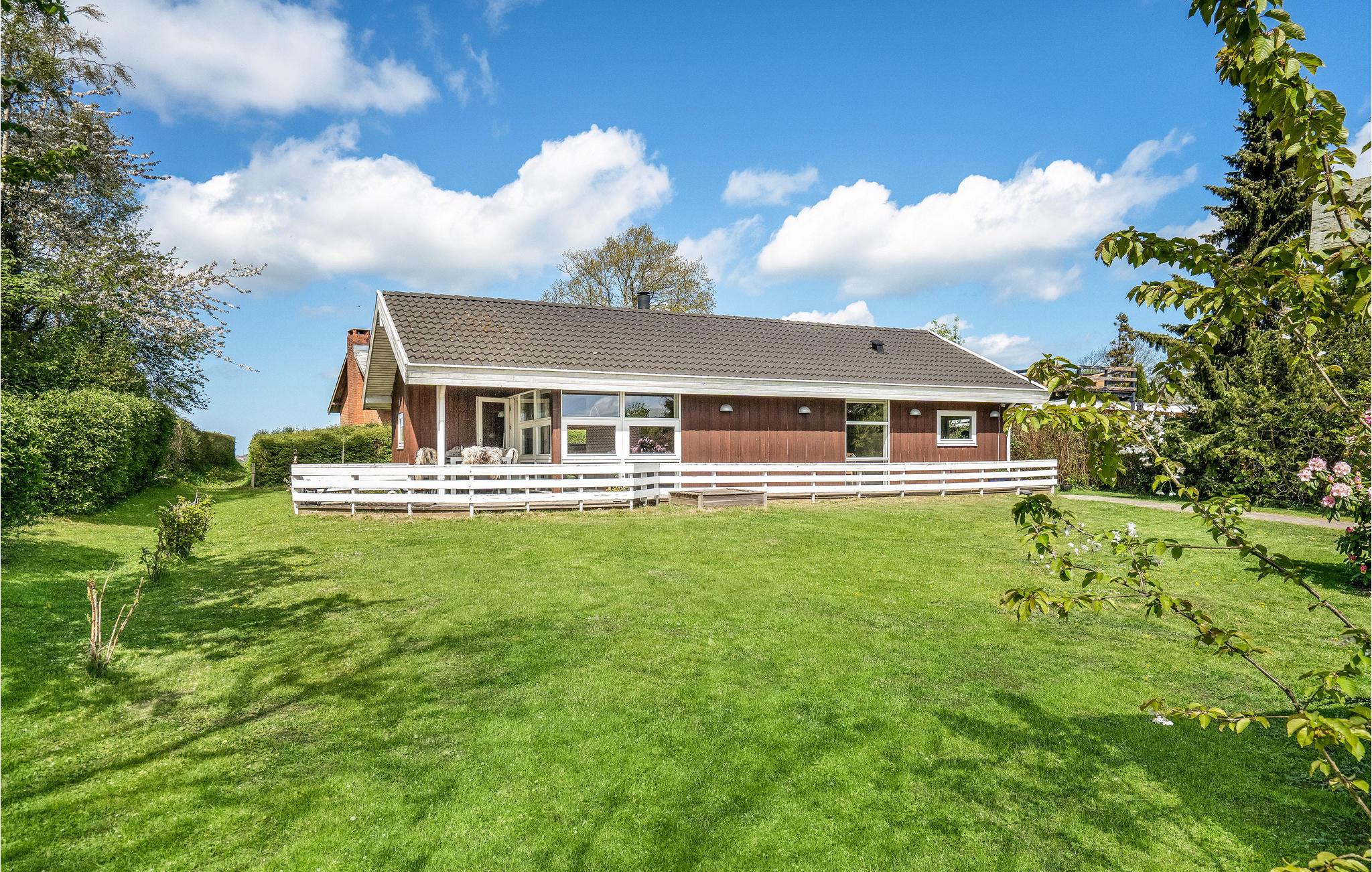 Hyggeligt sommerhus nær Strib Strand med sauna, spabad og flere terrasseområder.
