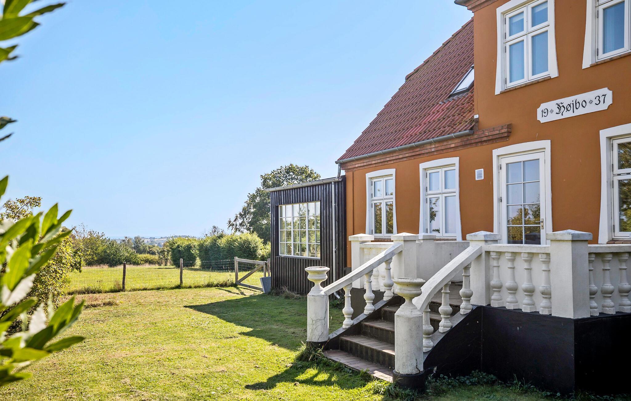 Velkommen til "Højbo" - et stort, lyst og rummeligt feriehus i smukke, landlige omgivelser. Huset har to etager og indeholder bl.a. en dejlig spisestue med brændeovn og en stor spiseplads, et "bibliotek," hvor der kan læses og slappes af, samt en TV-stue, hvor I kan holde hyggelige filmaftener. I husets store, veludstyrede køkken m. bl.a. amerikansk køleskab/fryser og to ovne er det en fornøjelse at være flere om at tilberede lækre feriemåltider. I den skønne havestue kan naturen og havet nydes gennem de store vinduespartier. Der er badekar på badeværelset i stueetagen. Huset har et luft/vand-varmepumpesystem og solceller, der giver jer billig energi.