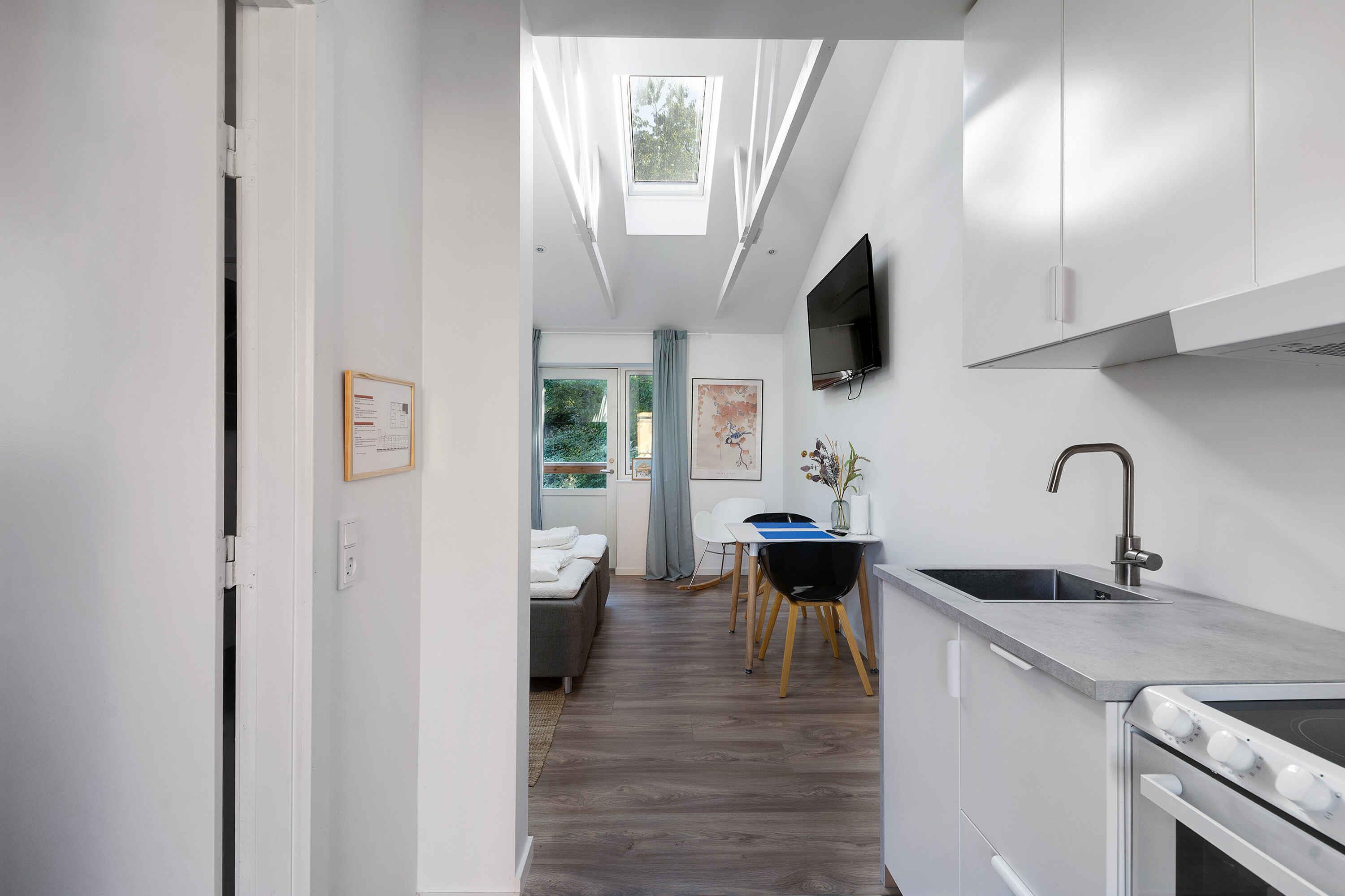 Velkommen til SOLGAARDEN BADEPENSION – dit hyggelige opholdssted sted midt i det oprindelige Bornholm. En moderne oase på 25 m2. Lejligheden rummer et soveværelse og to sovepladser. Perfekt til parret eller den lille familie. Solgaarden er for jer der vil nyde naturens ro og nogle af Bornholms skønne omgivelser – og ikke mindst alle de skønne gastronomiske muligheder der findes på Bornholm. Solgaarden har i alt 9 lejligheder og er derfor også stedet for jer der rejser som en gruppe eller en stor-familie på tværs af generationer. Solgaarden ligger med fuld udsigt over Østersøen. Oprindeligt var gården en skole, der sidenhen blev udvidet for at fungere som selskabsforretning og lejrskole. I dag er værelserne lavet om til små nyrenoverede lejligheder med eget badeværelse og eget køkken. Stedet har et virkelig hyggeligt miljø på gårdspladsen, med en spiselade og stor bålplads. Desuden har lejligheden sin egen adgang til en stor terrasse, der ligger ud til den vilde natur. Fra gårdspladsen kan man bevæge sig ned i Solgårdens skønne store have, der er oplagt til leg, afslapning, frokost under æbletræerne, og alverdens solrige hyggestunder. Svaneke byder på unikke oplevelser. Lokale kunsthåndværkere, historiske gader og havets brus.