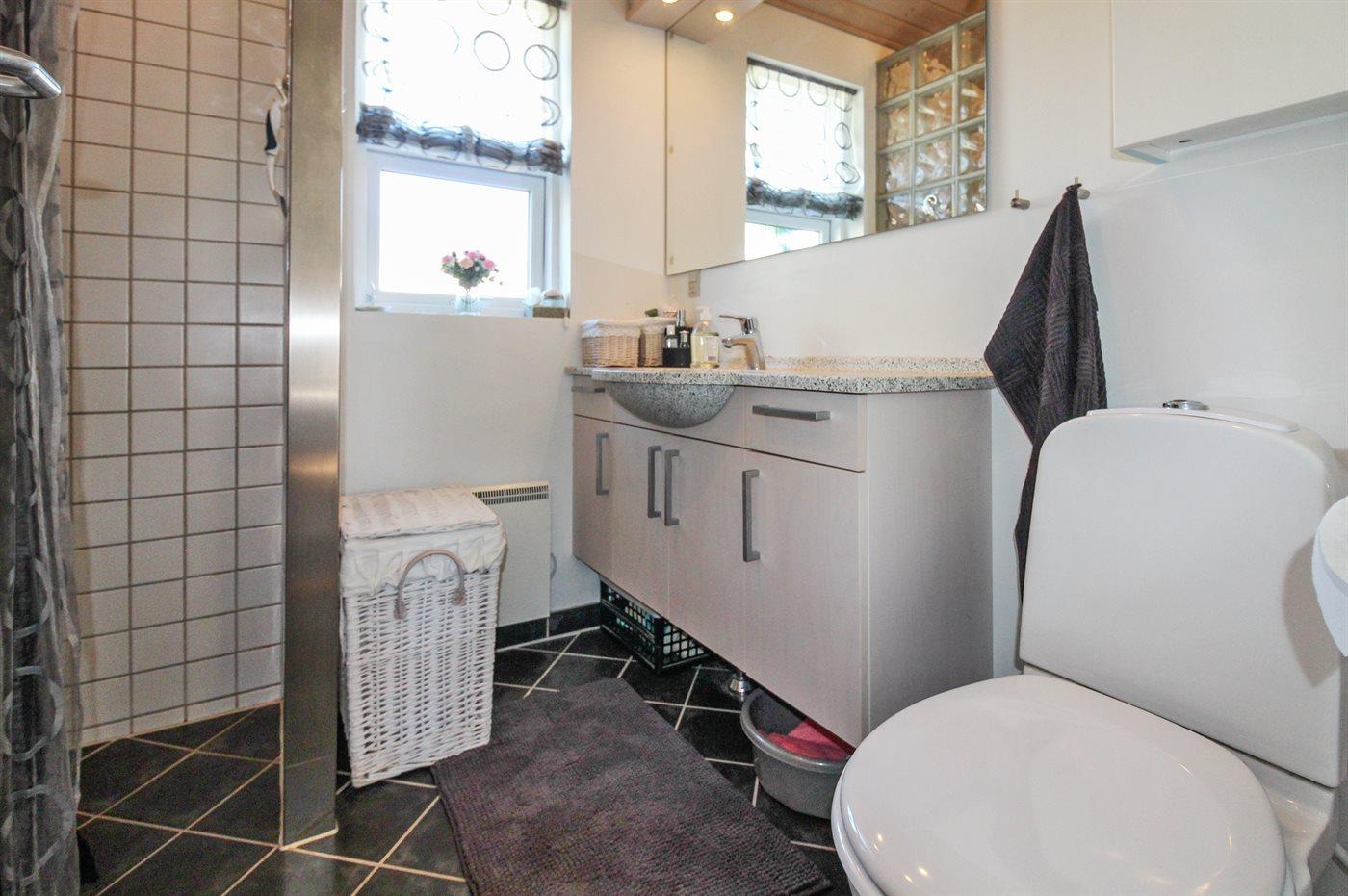 Der er 1 badeværelse med bruseniche og 1 toilet.. Der er gulvvarme på 1 badeværelse.
