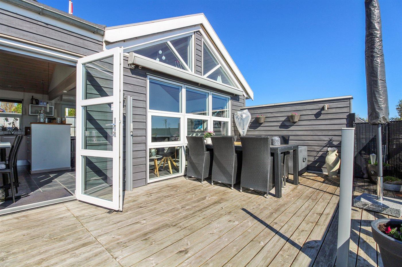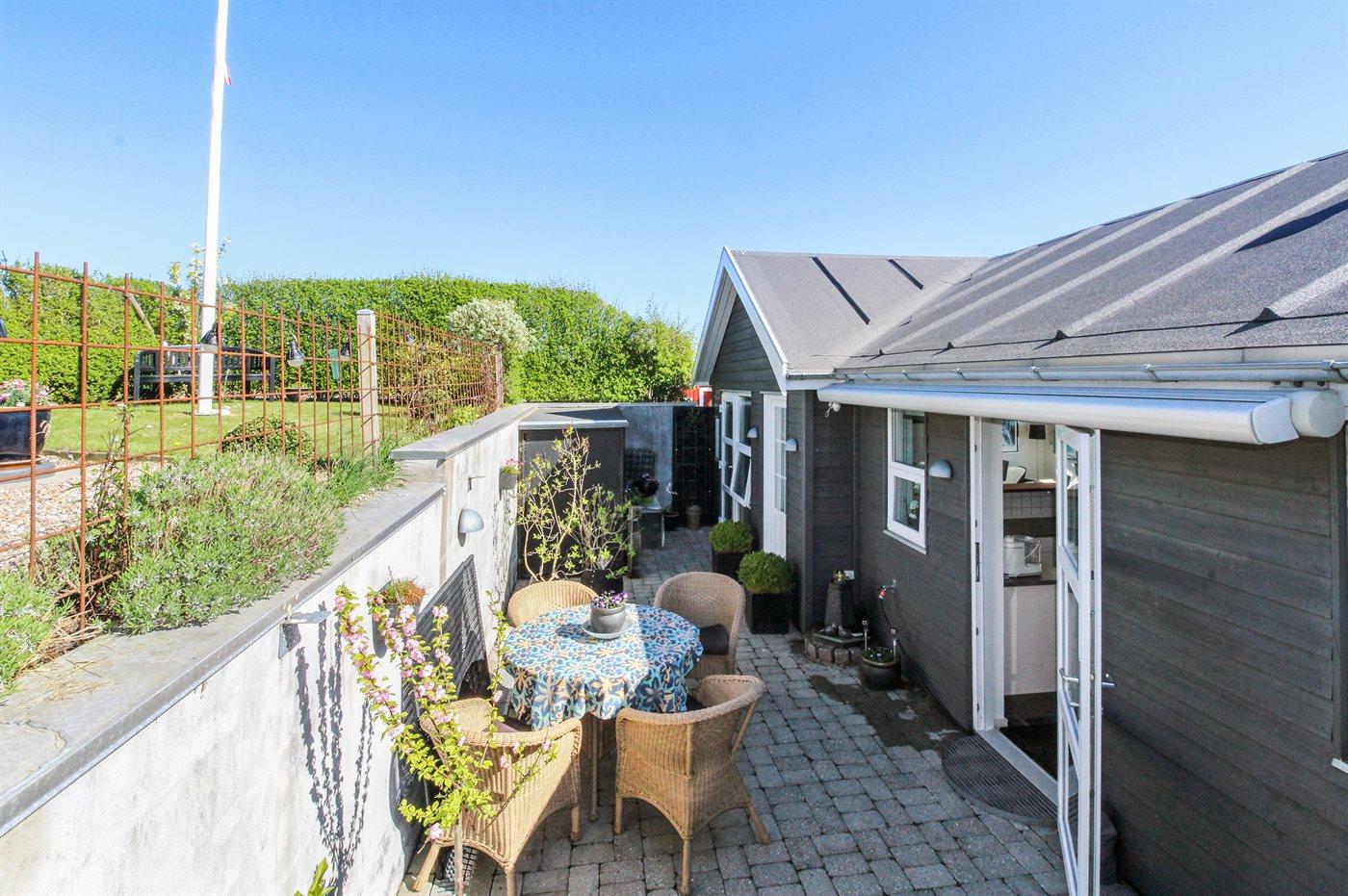 Sommerhus ved vandet med terrasse og havudsigt