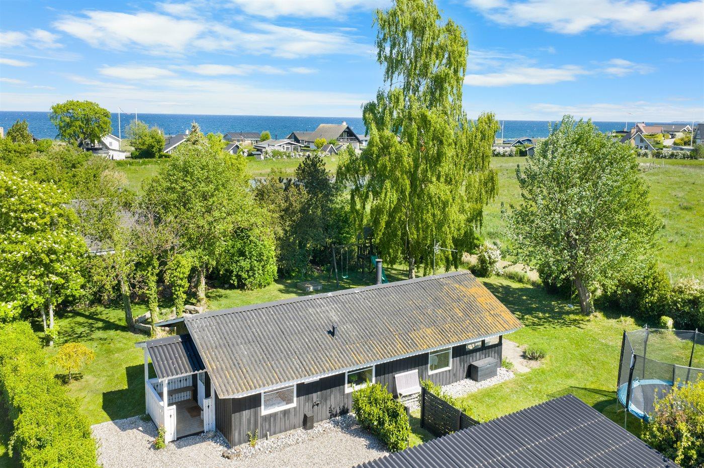 Ferieboligen er beliggende på en 930 m² stor havegrund. Der er 200 m til havet. Der er en badebro i nærheden. Nærmeste forretning er beliggende i en afstand af 7500 m. Til ferieboligen hører åbent terrasseareal. Desuden er der overdækket terrasse. Gynge. Sandkasse. Trampolin. Legetårn. Rutchebane. Fodboldmål. Bålsted. Grill til rådighed. Parkering ved ferieboligen.