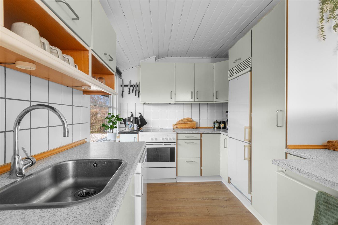 Køkkenet er udstyret med 1 køleskab. Der er 4 keramiske kogeplader, varmluftovn, mikrobølgeovn samt opvaskemaskine.