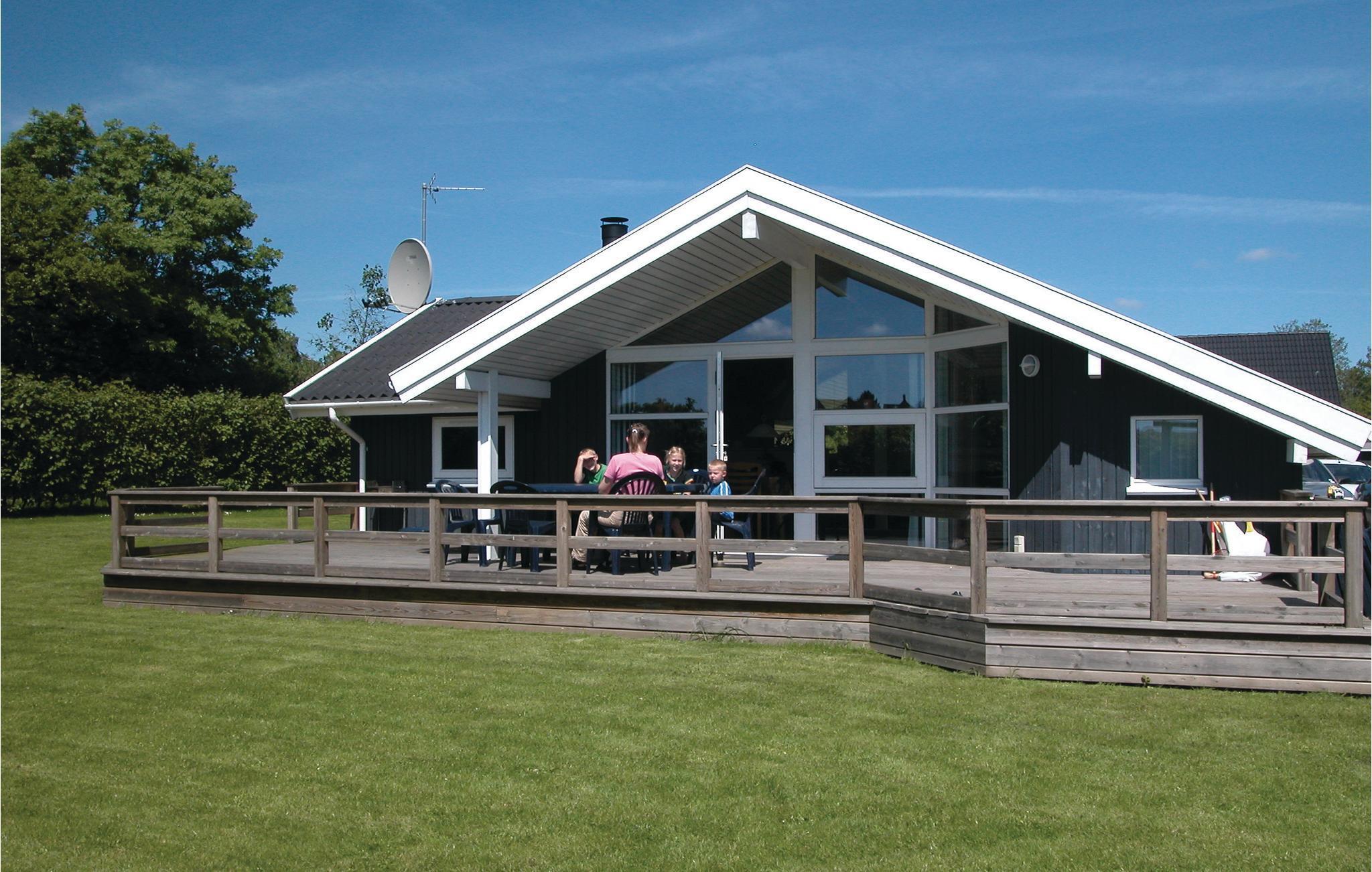 Moderne sommerhus ved Storebælt med sauna, spabad og legeplads til afslappende ferie.