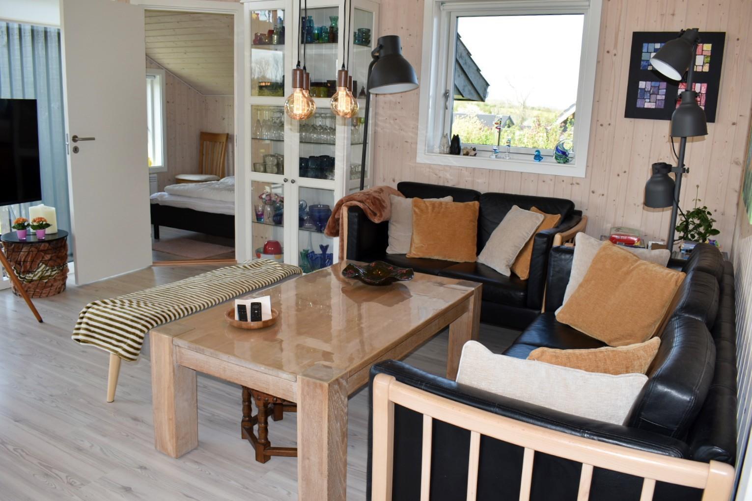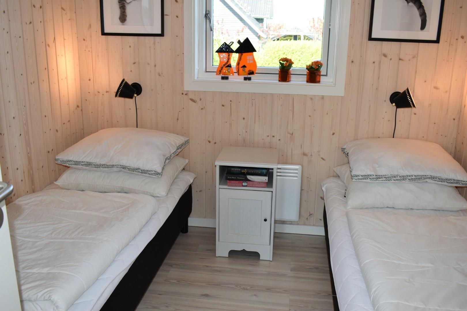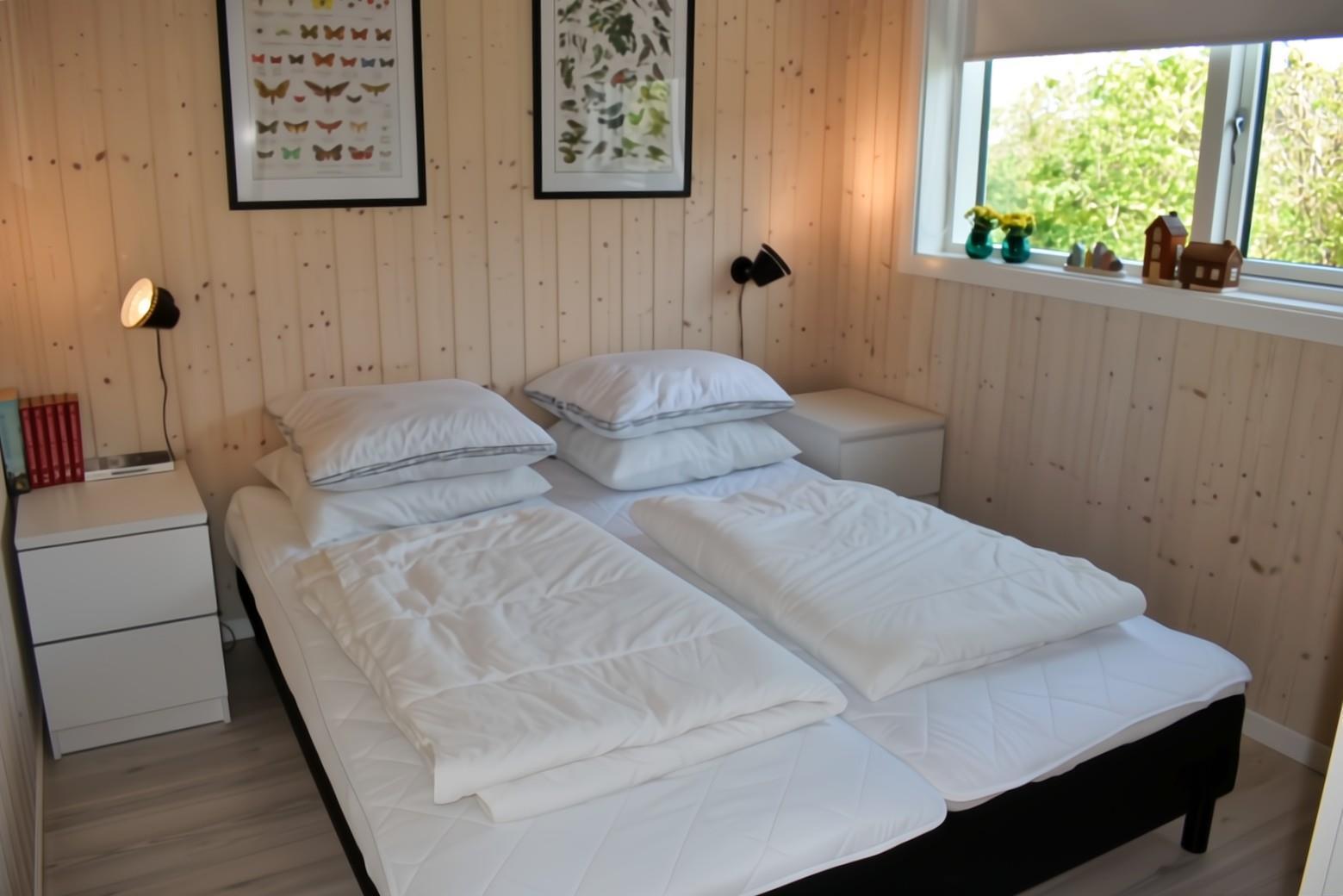 Sommerhuset rummer 3 soveværelser med god skabsplads (to med dobbeltsenge og ét med enkeltsenge) samt en hyggelig hems med plads til leg og afslapning. Badeværelse med stor bruseniche og vaskemaskine/tørretumbler.