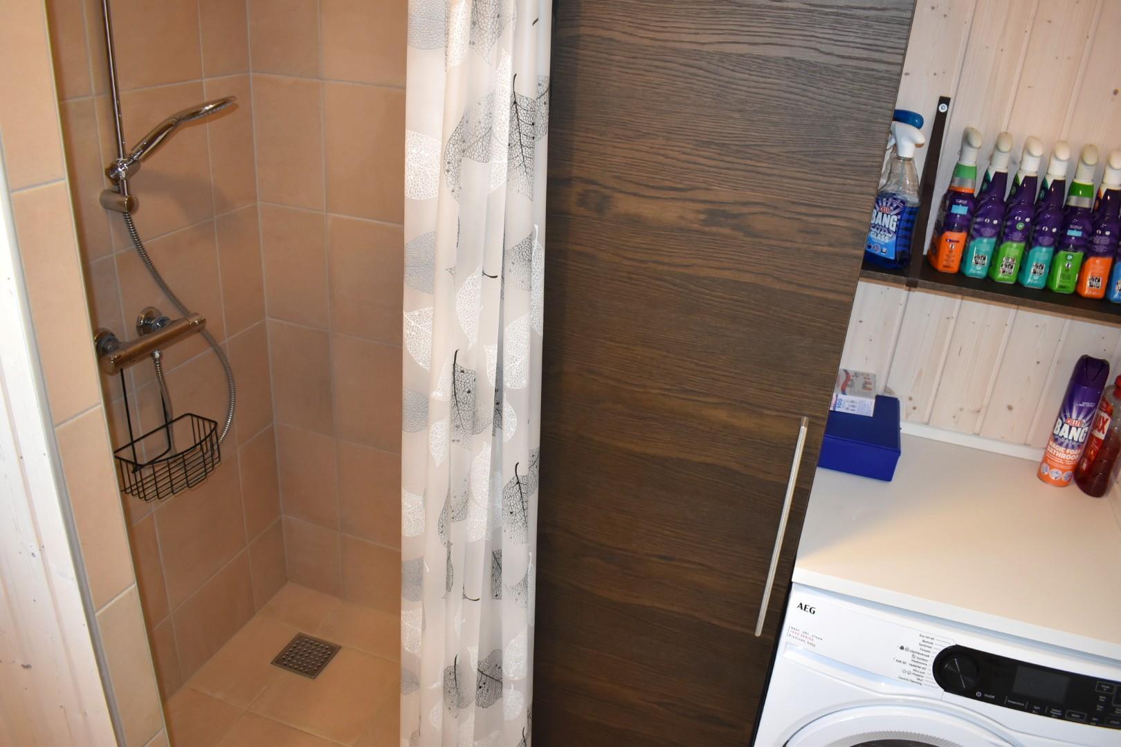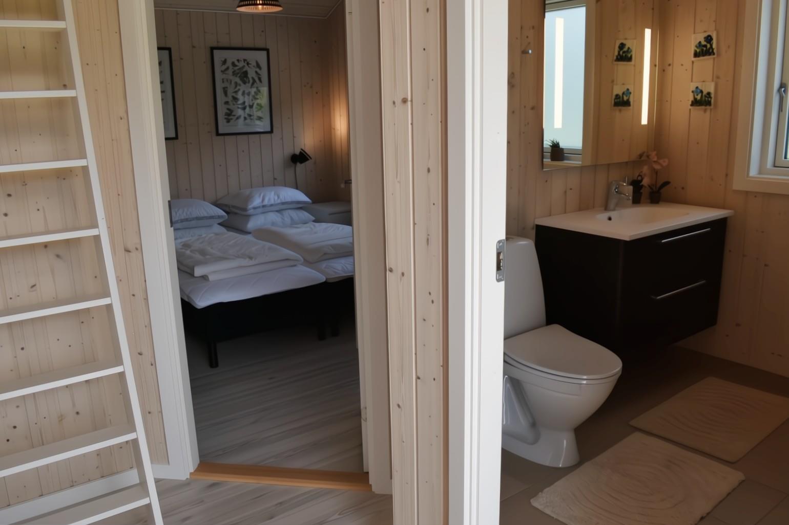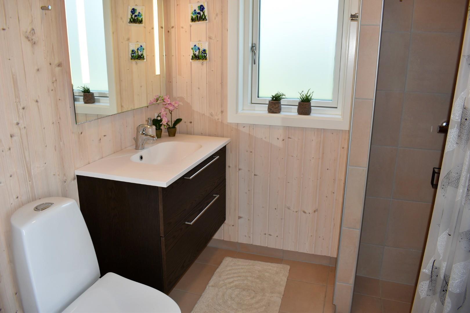 Sommerhuset rummer 3 soveværelser med god skabsplads (to med dobbeltsenge og ét med enkeltsenge) samt en hyggelig hems med plads til leg og afslapning. Badeværelse med stor bruseniche og vaskemaskine/tørretumbler.