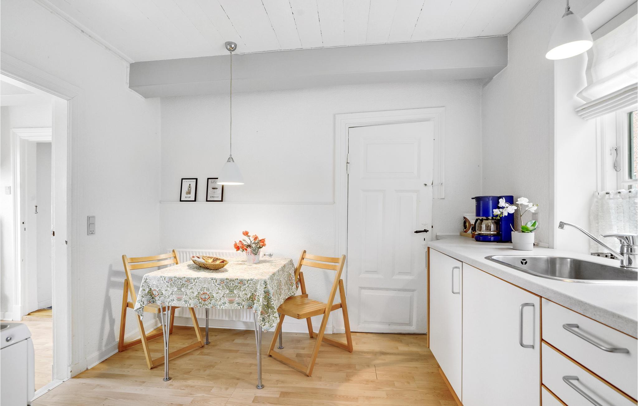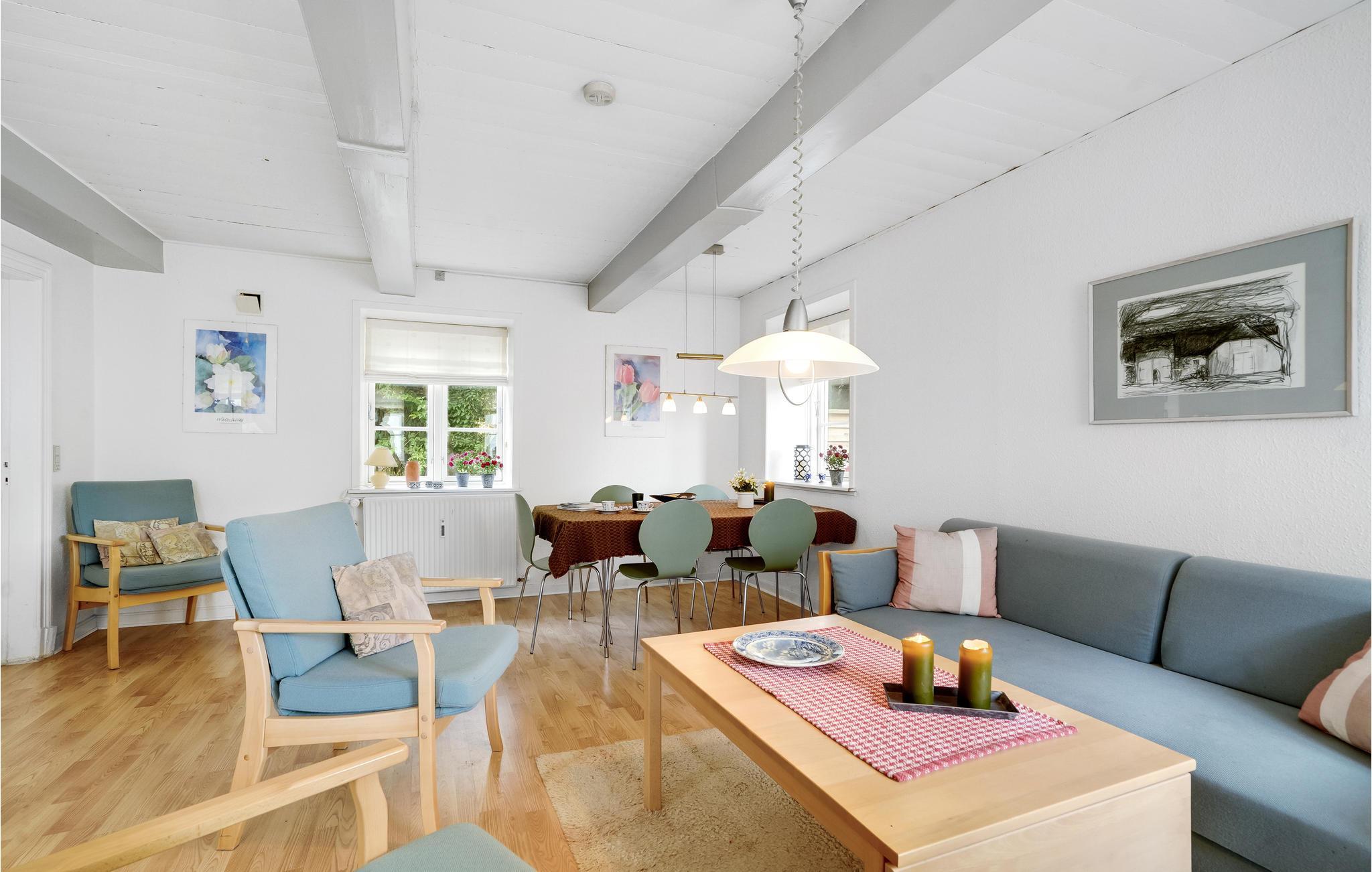 Huset er hyggeligt og komfortabelt indrettet; I finder alt I behøver til en vellykket ferie her når som helst på året. Med 2 soveværelser tilbyder huset plads til 5 personer. Der er behagelig gulvvarme på badeværelset.