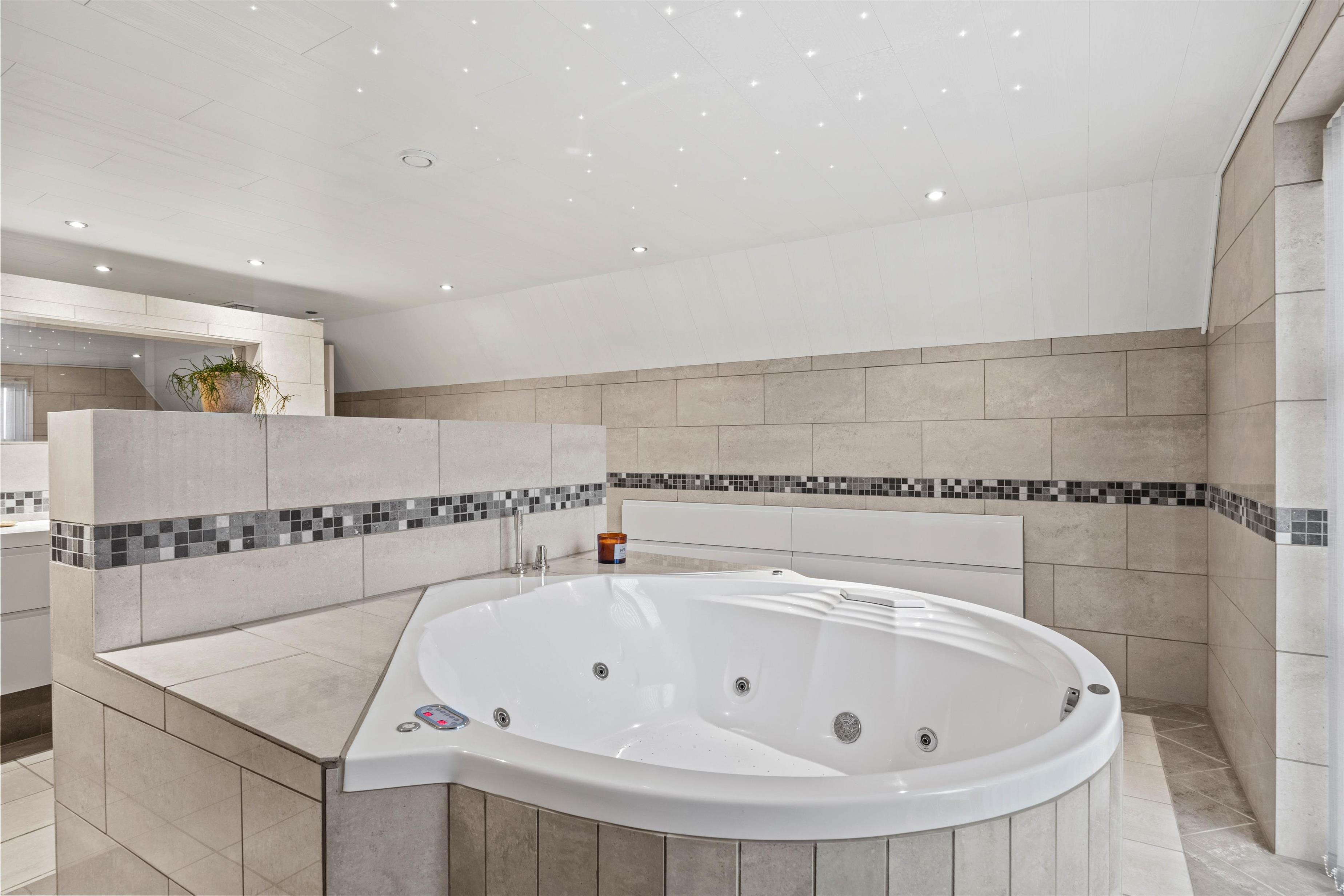 Husets store 50 m² indendørs pool indbyder til timevis af leg og afslapning for både børn og voksne – uanset årstid. Derudover kan I nyde velvære i saunaen.