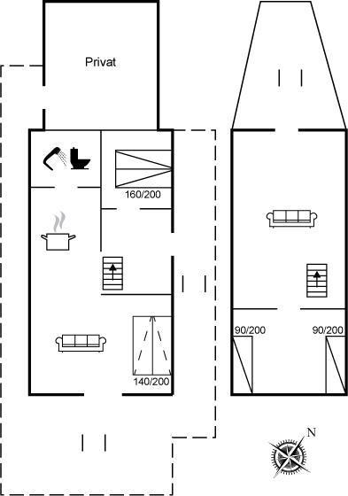Bemærk, at trappen, der fører op til 1.sal ikke er egnet for gangbesværede.