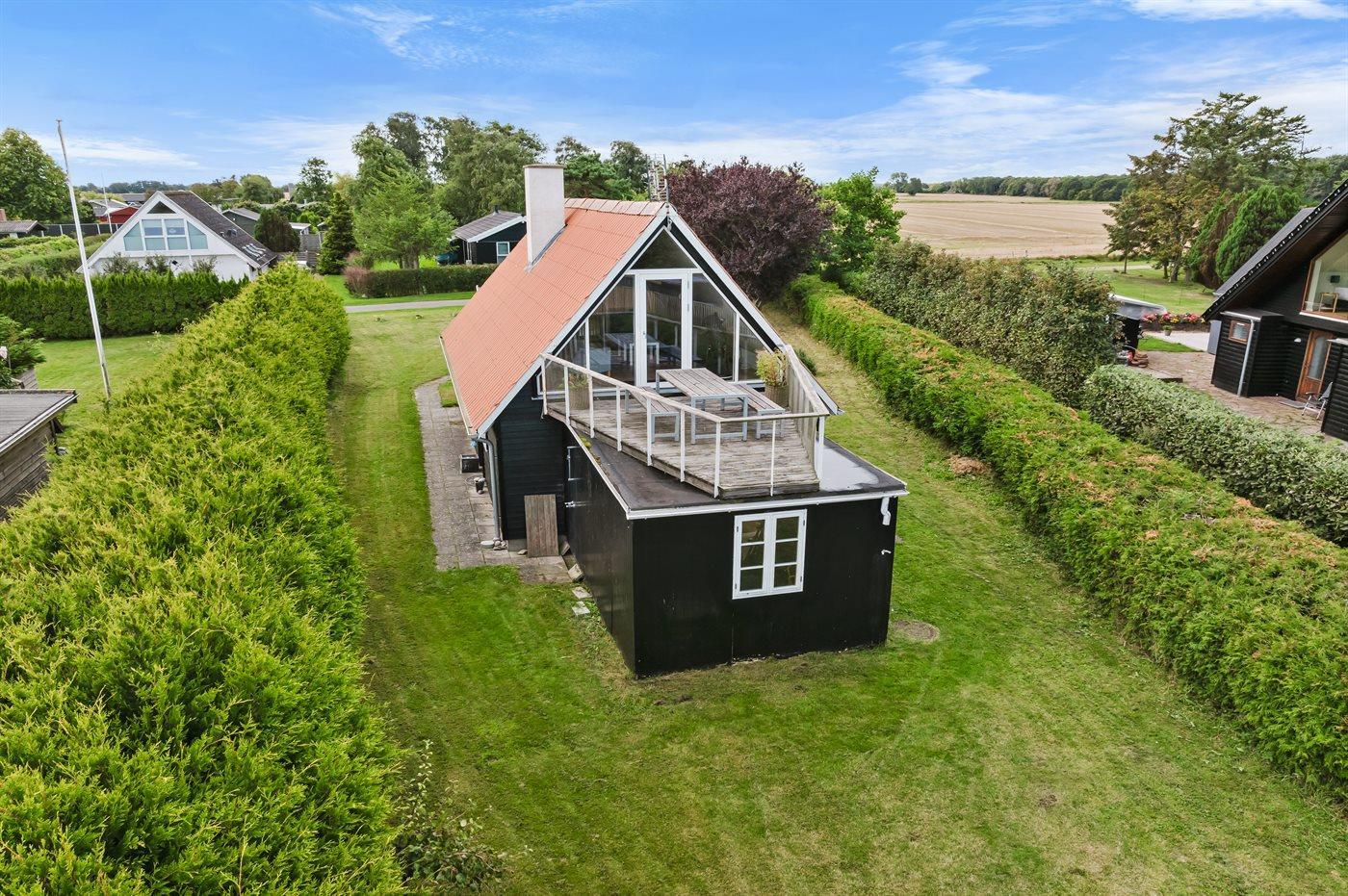 Moderne sommerhus fra 2022 med havudsigt og tagterrasse tæt på vandet i Otterup.