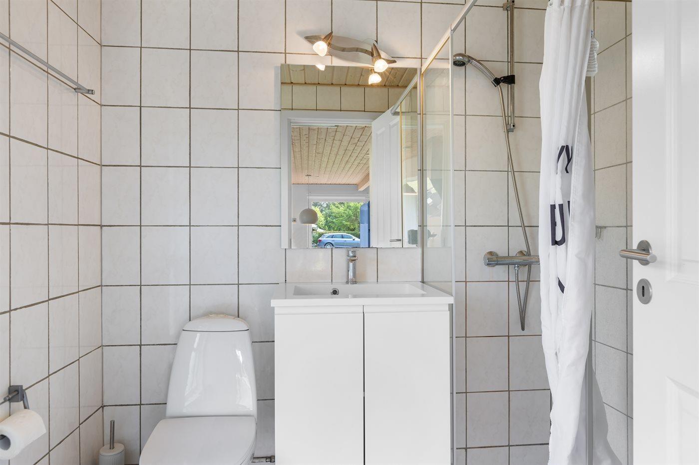 Der er 1 badeværelse med bruseniche og 1 toilet.
