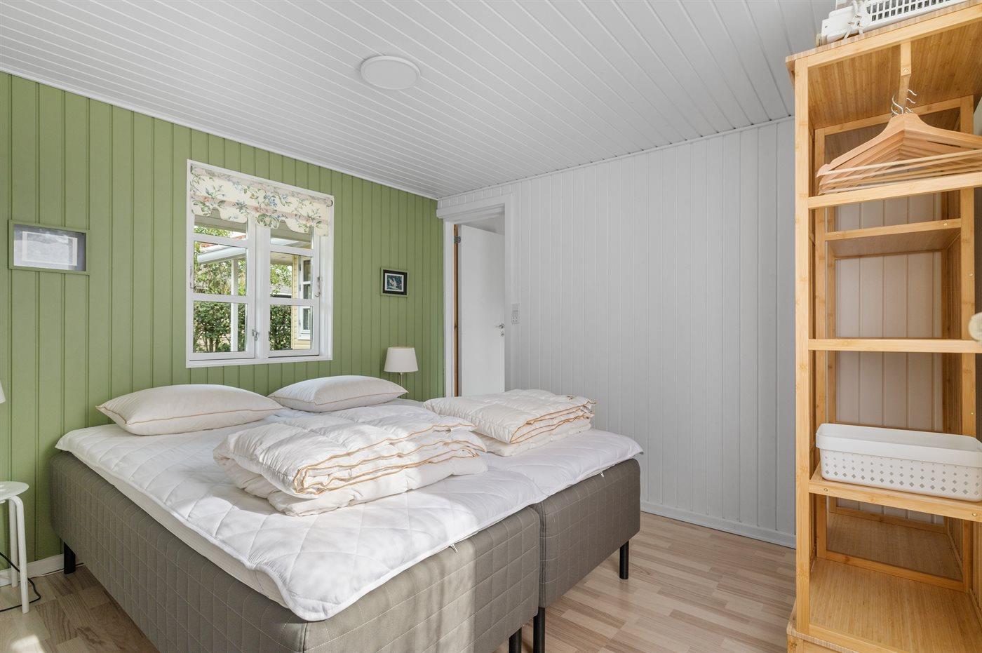 Der er i alt 2 soveværelser. Sovepladserne fordeler sig på: 4 sovepladser i dobbeltsenge. 1 soveplads i enkeltseng. 2 af disse sovepladser befinder sig i anneks, og 1 soveplads findes i sommerhusets stue. Derudover er der 1 stk. barneseng.