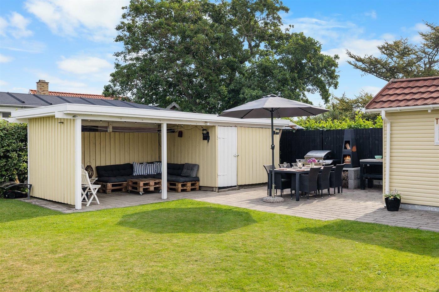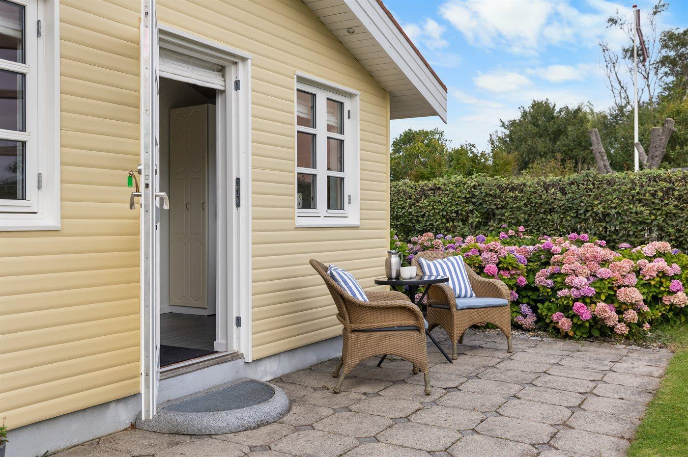 Ferieboligen er beliggende på en 578 m² stor havegrund. Der er 60 m til havet. Nærmeste forretning er beliggende i en afstand af 2200 m. Til ferieboligen hører åbent terrasseareal. Desuden er der overdækket terrasse. Bålsted. Udendørs bruser. Grill til rådighed. Parkering ved ferieboligen.