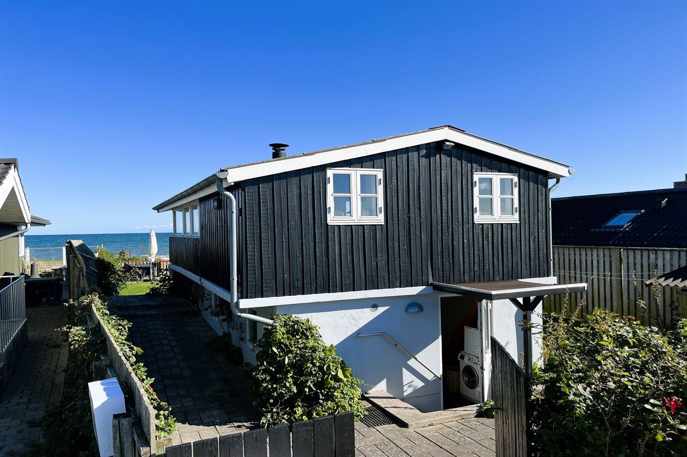 Hyggeligt sommerhus ved stranden med smuk havudsigt og flere hyggelige terrasser.