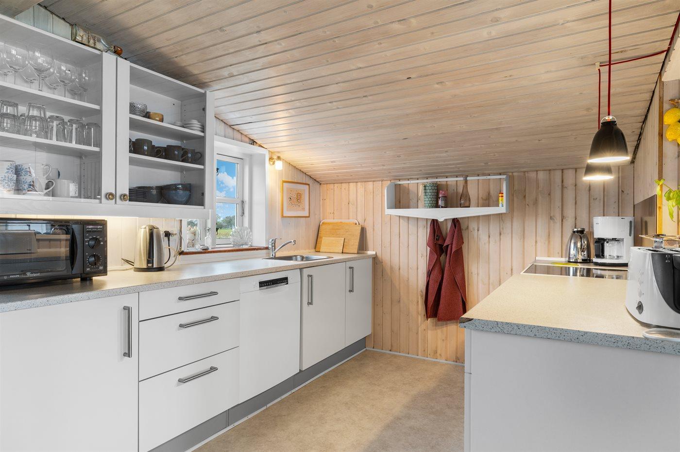 Køkkenet er udstyret med 1 køleskab. Der er 4 keramiske kogeplader, varmluftovn, mikrobølgeovn samt opvaskemaskine.