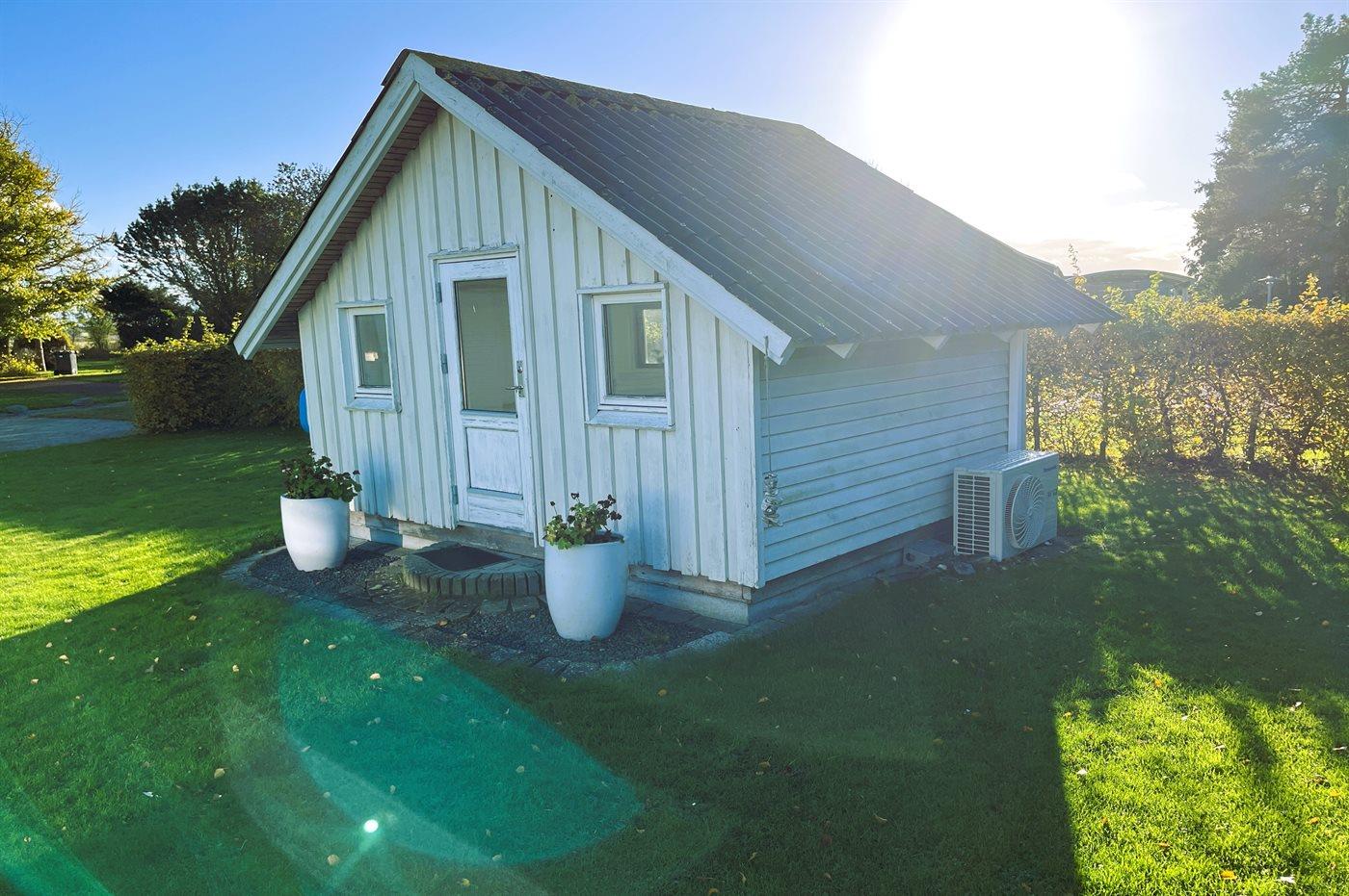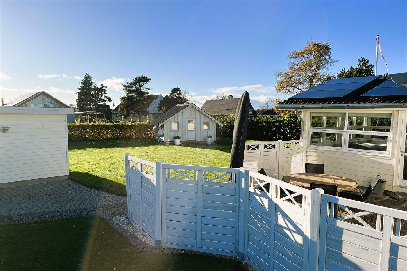 Moderniseret sommerhus nær havet med aktivitetsrum og stor have i Otterup.