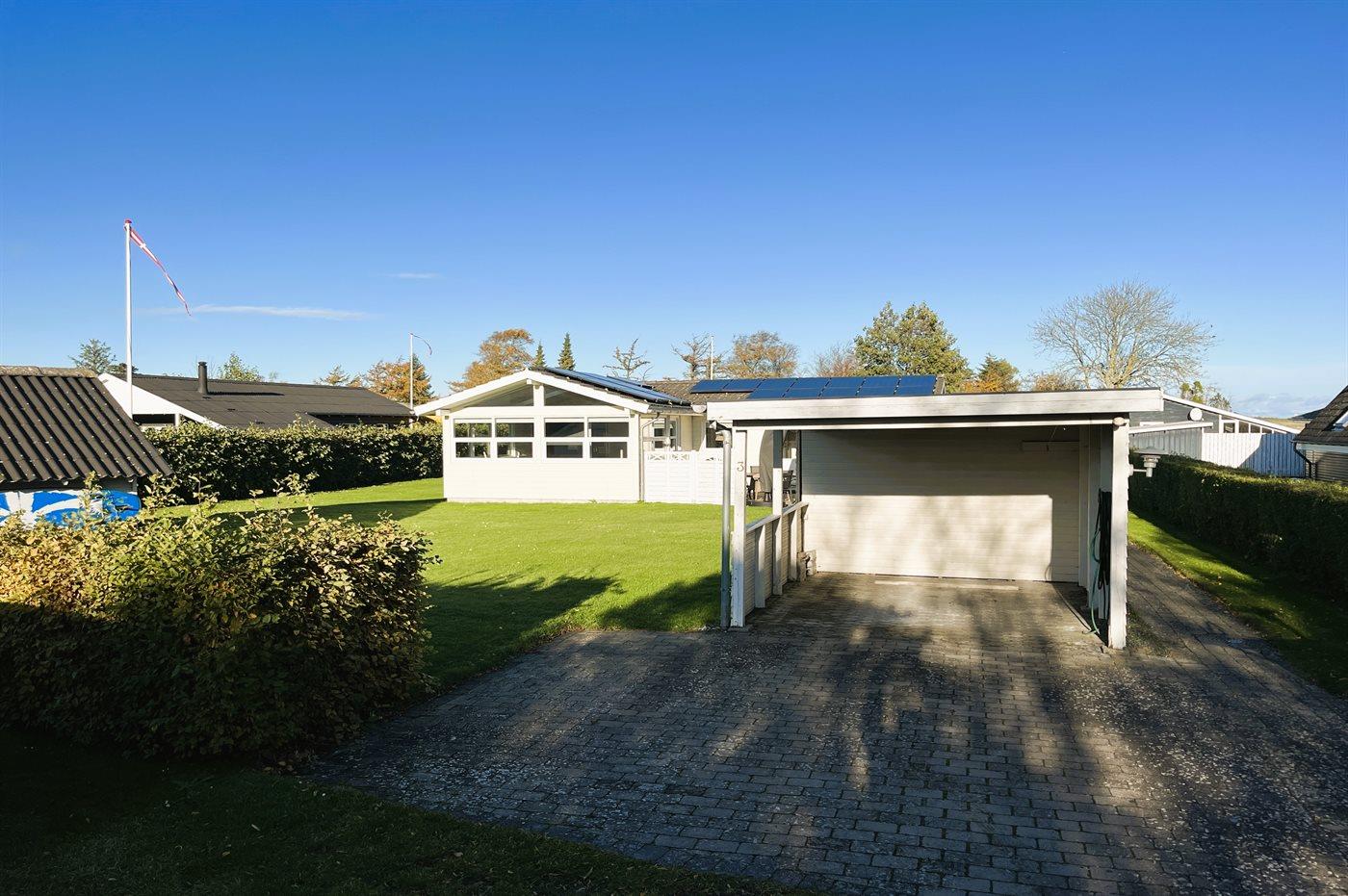 Ferieboligen er beliggende på en 756 m² stor havegrund. Der er 280 m til havet. Nærmeste forretning er beliggende i en afstand af 1800 m. Til ferieboligen hører åbent terrasseareal. Udendørs bruser. Grill til rådighed. Der er carport til rådighed. Parkering ved ferieboligen.