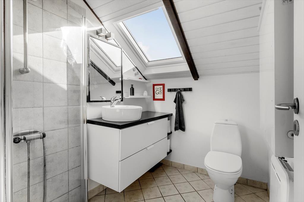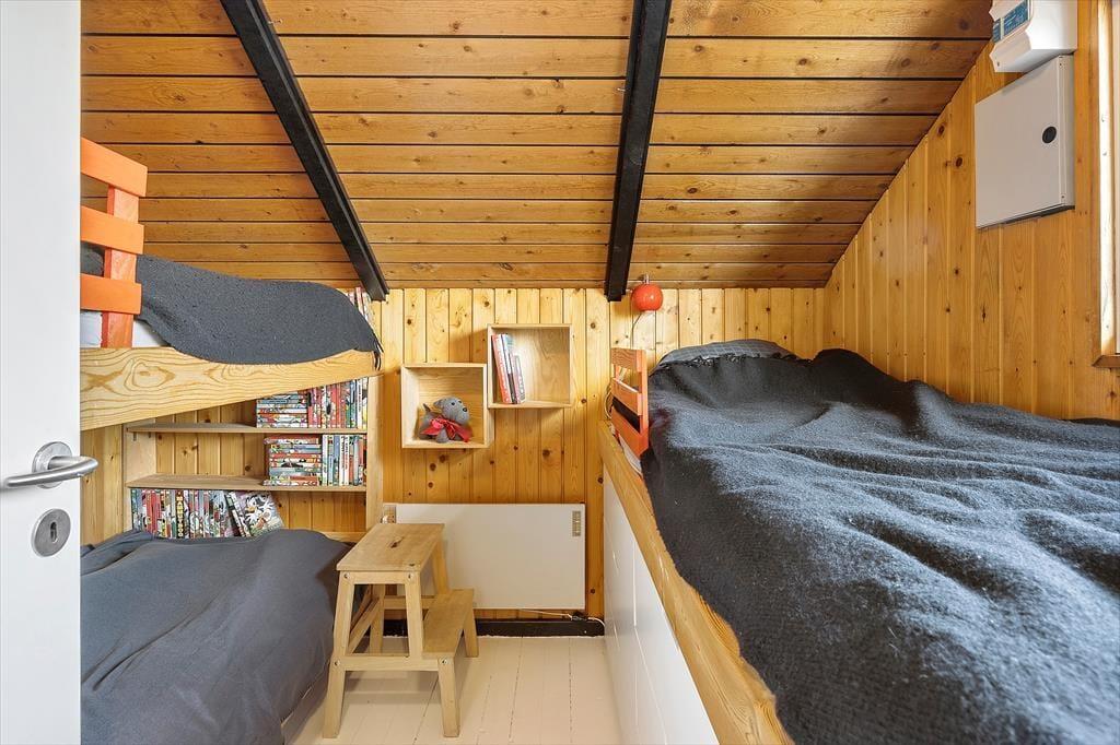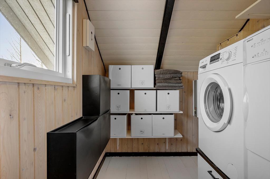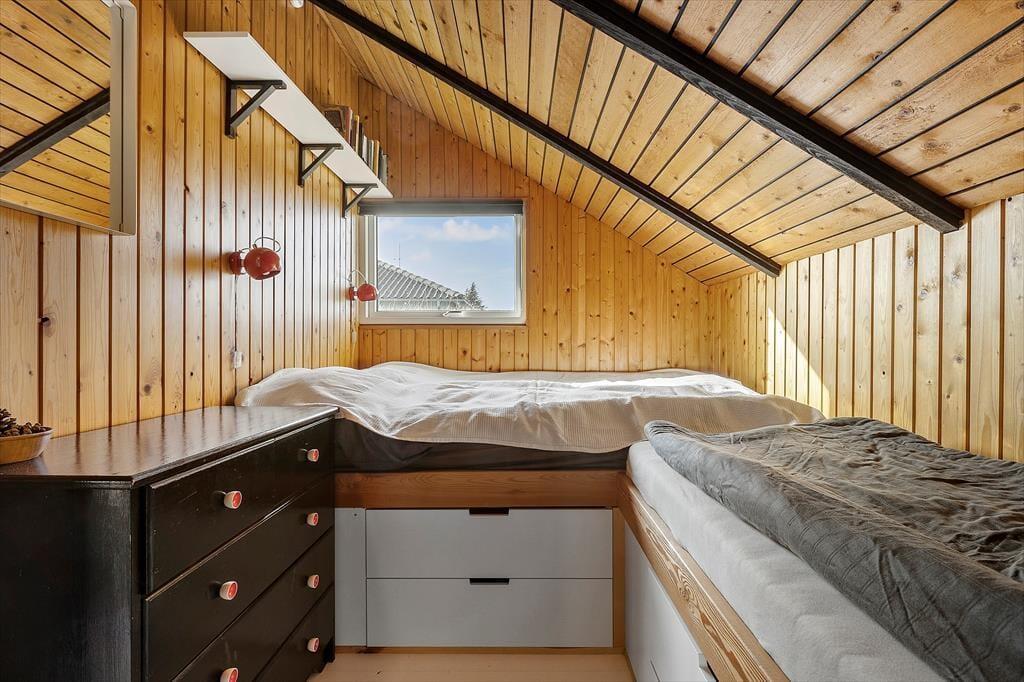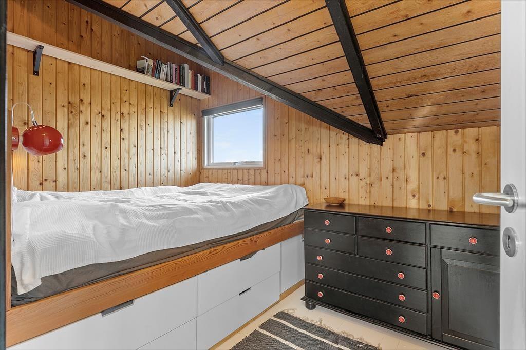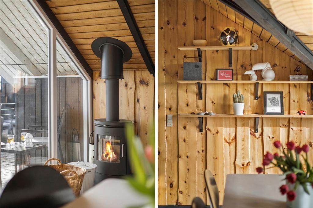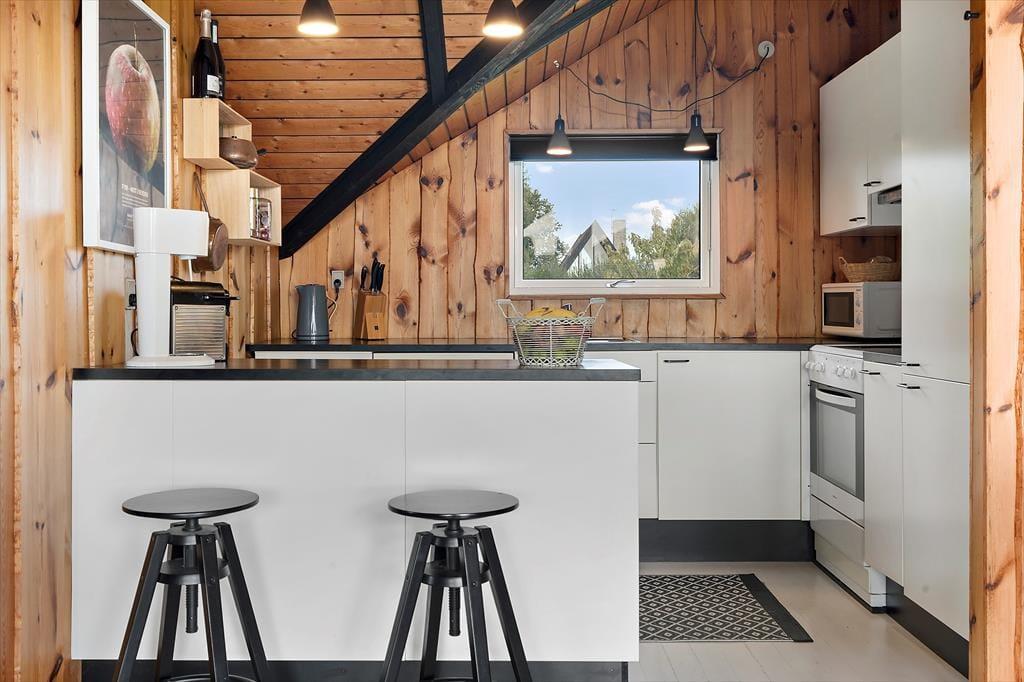 Når du træder ind i dette hyggelige sommerhus, mødes du af en varm og indbydende atmosfære. De synlige bjælker i hele huset og loft til kip i den store åbne stue skaber en autentisk sommerhusstemning. Stuen er rummelig og lys, med brændeovn som det naturlige samlingspunkt for hyggelige aftener med familie og venner. Køkkenet er i åben forbindelse til stuen, hvilket gør det nemt at være sammen, mens der tilberedes måltider. Her er alt, hvad du behøver for at lave lækker mad, og når det er tid til at spise, kan I sætte jer til rette ved spisepladsen med udsigt til haven. Huset byder også på et flot, lyst badeværelse, der er indrettet med moderne faciliteter, så du kan starte dagen frisk og veludhvilet.
