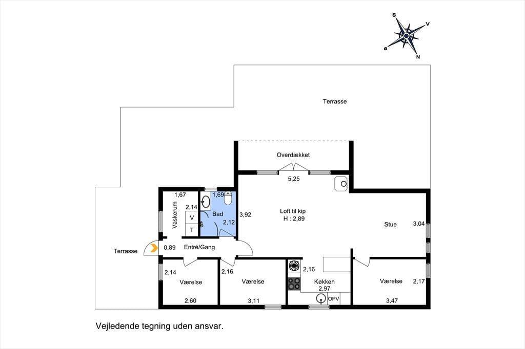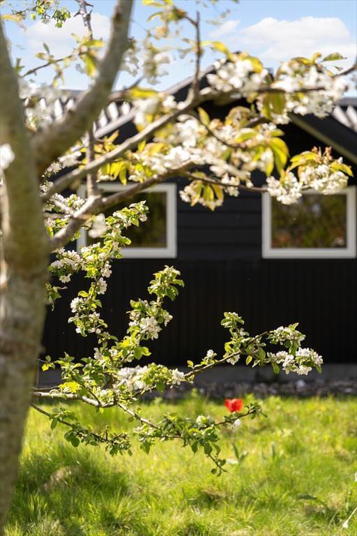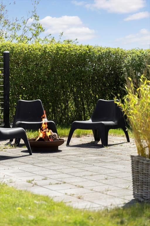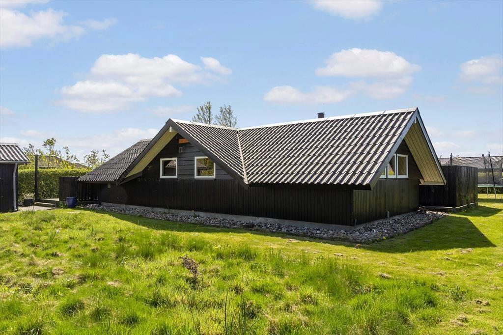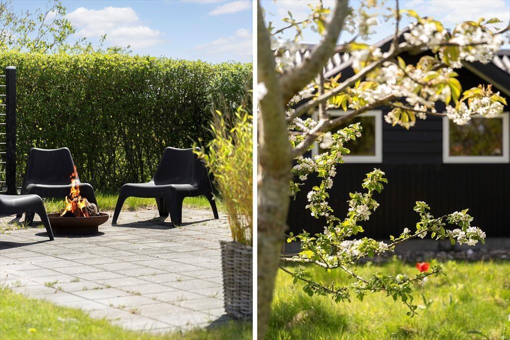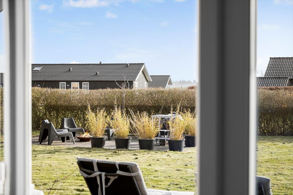 Den store, solrige træterrasse, der omgiver huset, er perfekt til afslapning og udendørs hygge. Her kan du nyde morgenkaffen i solen, grille lækre middage og tage en lur i skyggen på varme eftermiddage. Haven, som grænser op til terrassen, er ugenert og grøn, hvilket gør den til en ideel legeplads for børn eller et fredeligt sted for voksne at nyde roen. Du kan høre fuglene synge og mærke den friske brise fra havet, som ligger i gåafstand fra sommerhuset. Her er der plads til både aktiviteter og afslapning – måske med en god bog eller et spil badminton på plænen.