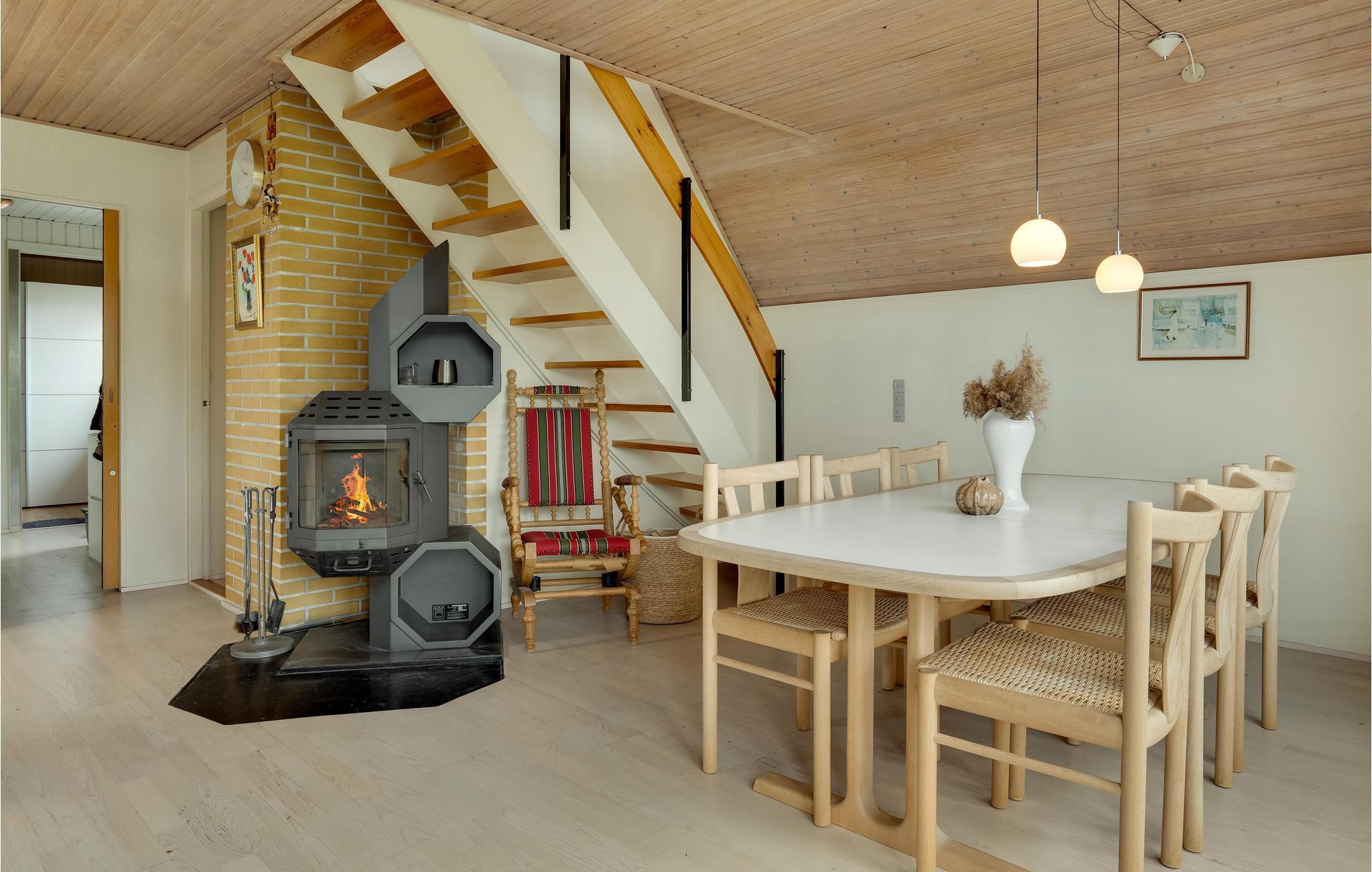 Et charmerende feriehus beliggende ved Tørresø Strand med gåafstand til den meget familievenlige sandstrand med lavt badevand. Feriehuset er velindrettet med stue/køkkenafdeling ud i et, to soveværelser samt et badeværelse med vaskemaskine i stueetagen. På første sal findes et stort åbent rum med en hjørnesofa i den ene ende og en dobbeltseng i den anden ende. På terrassen kan I slappe af i havemøblerne, nyde udsigten over den velholdte have og få startet på bogen, som I har medbragt til ferien. Om aftenen kan I tænde op i grillen og tilberede lækre feriemåltider. En carport står desuden til jeres disposition.
