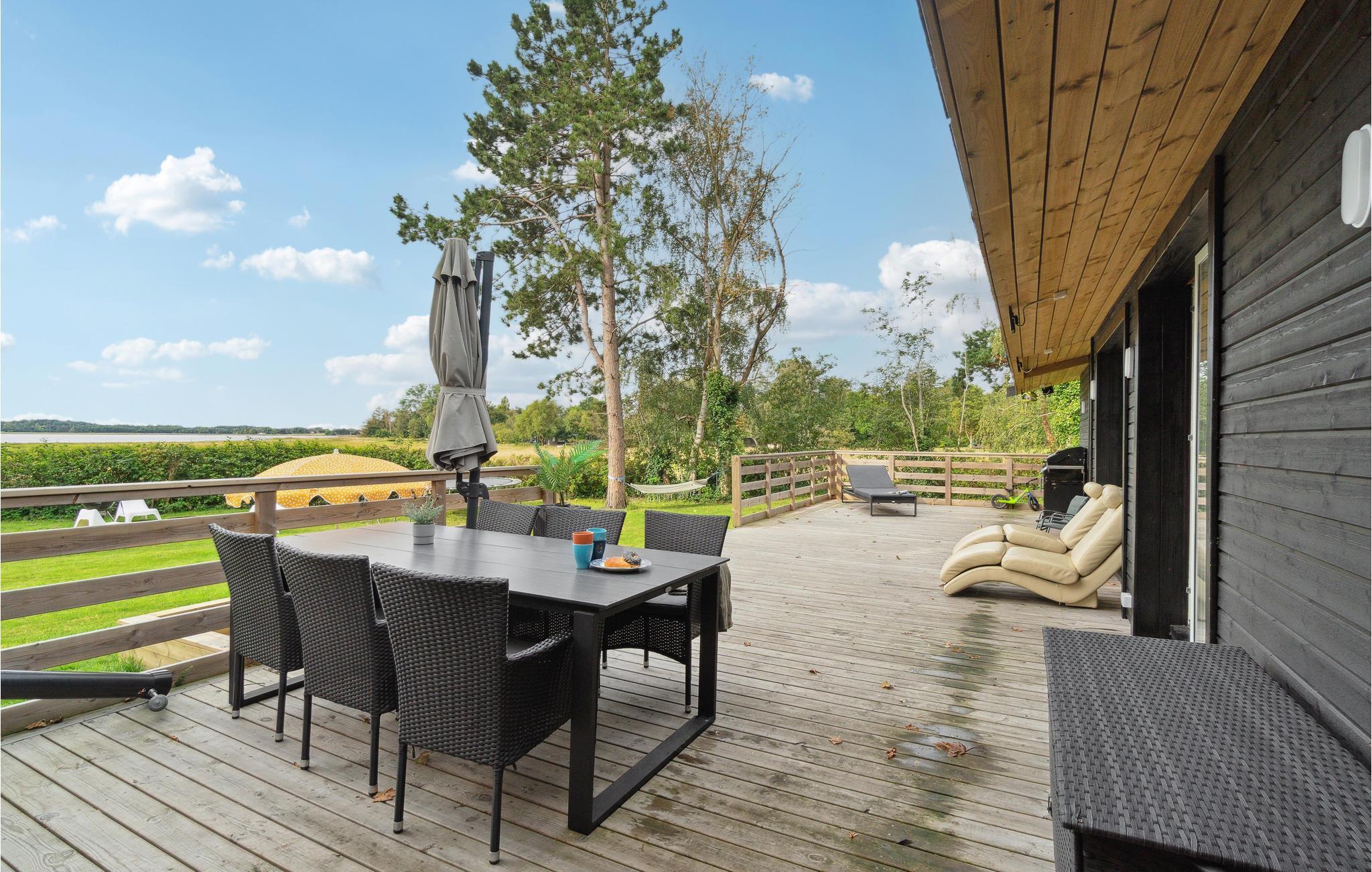 Velkommen til dette komfortable hus, som venter på jer på en skøn naturgrund med panoramaudsigt over den smukke fjord og tilbyder jer de ideelle rammer for en afstressende ferie tæt på naturen. Nyd en afslappende tid med familien eller venner i de lyse rum med en moderne atmosfære, hvor selv de mindste familiemedlemmer vil føle sig hjemme. Særligt lystfiskere vil i den grad få noget for pengene. Efter en aktiv dag kan I nyde en hyggelig aften med fælles madlavning og brætspilskonkurrencer. Hvem mon bliver aftenens vinder? Lad øjnene vandre ud over fjordlandskabet gennem gulv-til-loft-vinduerne, som inviterer naturen og smukke solnedgange indenfor. Også på den store terrasse kan I lade jer fortrylle af udsigten. Uanset om I foretrækker at være aktive i det fri eller tage den med ro, vil den dejlige naturgrund fornøje hele familien, særligt jeres børn! Ikke langt fra huset kan I kaste snøren ud og bade i fjorden.