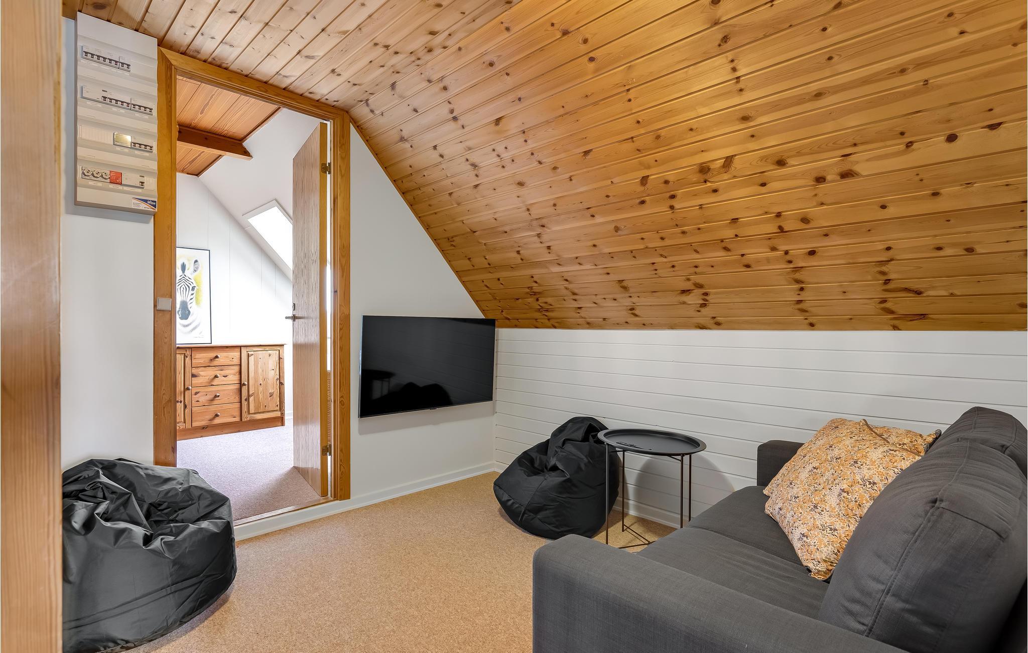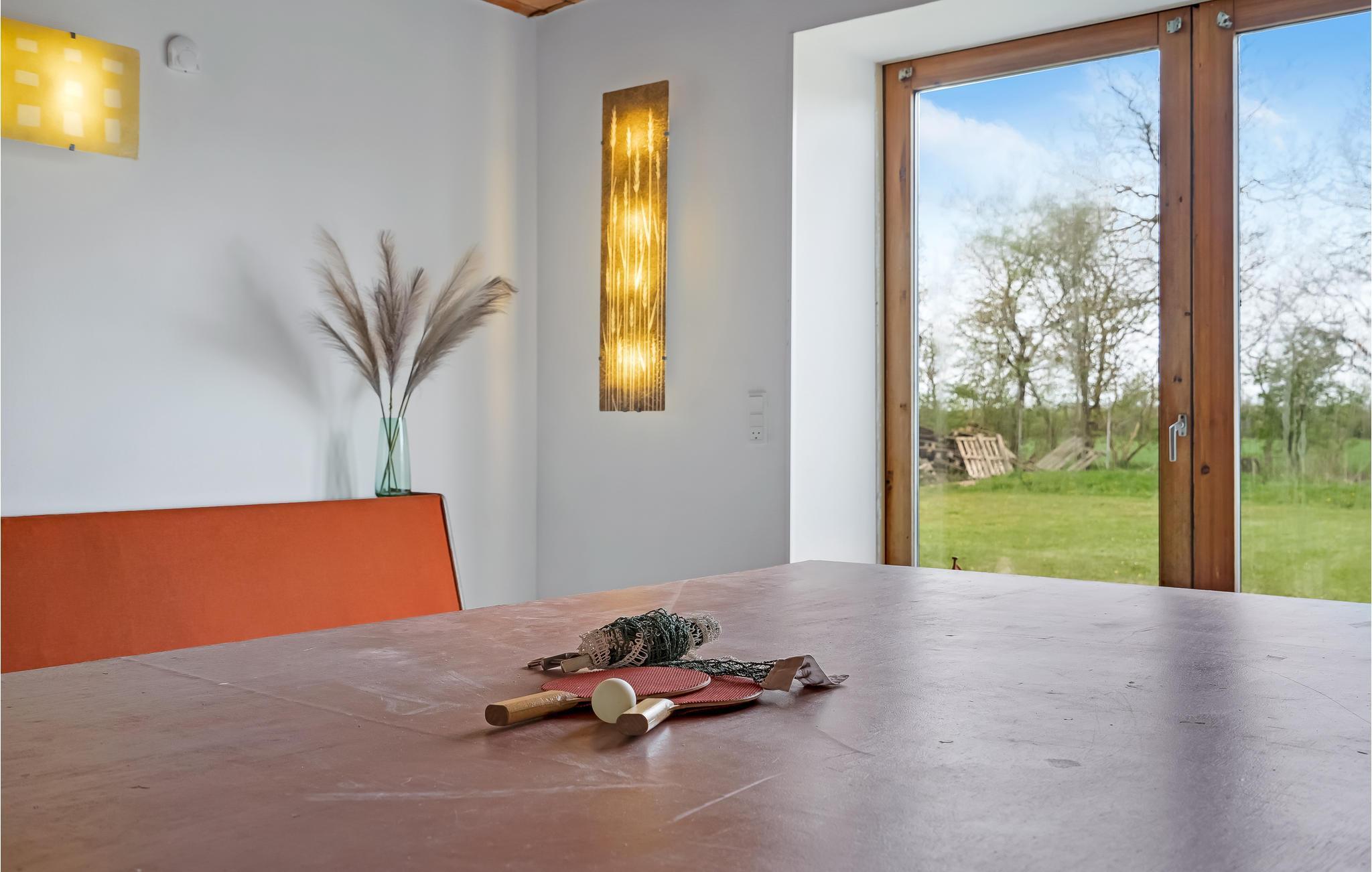 Glæd jer til nogle dejlige feridage i det vestjyske, hvor I kan få jeres base i dette store hus, som egner sig fantastisk til en stor familieferie eller en tur med jeres venner og deres børn. Her kan I slappe af sammen efter dagens strabadser og benytte jer af husets store udvalg af faciliteter. Gør madlavningen til et fællesprojekt, find sammen om brætspil og gode serier eller kast jer over de forskellige muligheder i aktivitetsrummet. Snup en dyst i et spil billard, bordtennis, bordfodbold eller dart eller ryk ud under åben himmel, for huset har også en dejlig have, hvor I kan have det sjovt sammen. Børnene vil sikkert få en god del af tiden til at gå på gyngerne, rutsjebanen og trampolinen. Måske har de store børn - eller hele familien - lyst til at overnatte i shelteret og slutte dagen af rundt om bålet med mad og hygge, mens stjernerne dukker op på himlen.