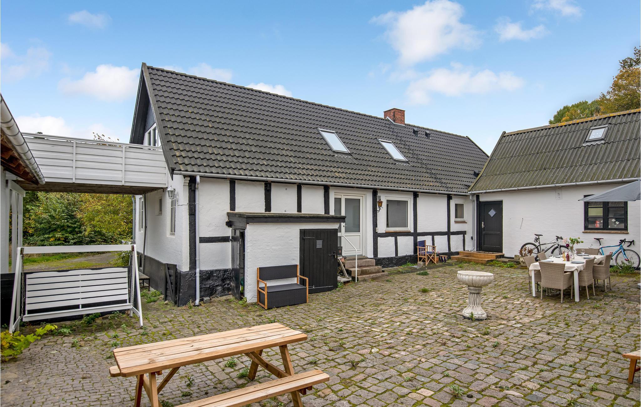 Dette rummelige feriehus byder velkommen i den hyggelige havneby Tejn. Lejligheden ligger i den gamle hovedgård i Tejn og byder på komfortable faciliteter og en stilfuld atmosfære, der straks får jer til at føle jer hjemme. Større familier eller to vennepar vil finde de ideelle rammer for ubekymrede feriedage her. I kan også nyde jeres tid i den hyggelige brostensbelagte gårdhave, hvor I kan tilbringe dovne eftermiddage og hyggelige sommeraftener. Her og på den store fælles naturgrund finder jeres børn masser af plads til at lege og måske møde nye legekammerater.