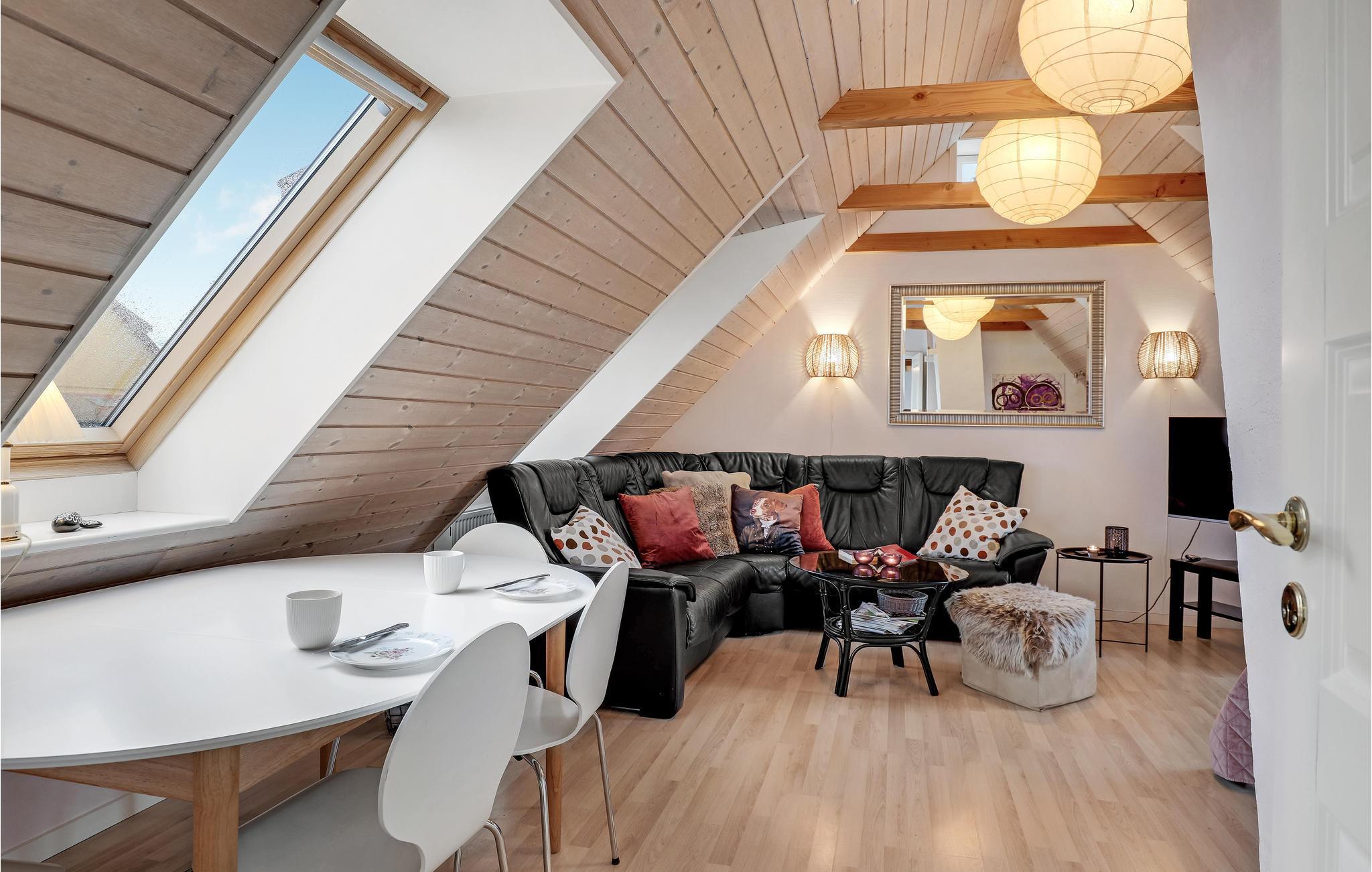 Hyggelig loftslejlighed i Tejn med havudsigt og stor tagterrasse, perfekt til familieferie på Bornholm.