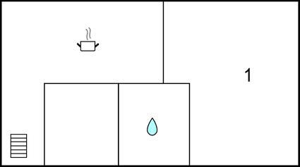 Badeværelse (nr. 1) - Varmt og koldt vand. Bruser
