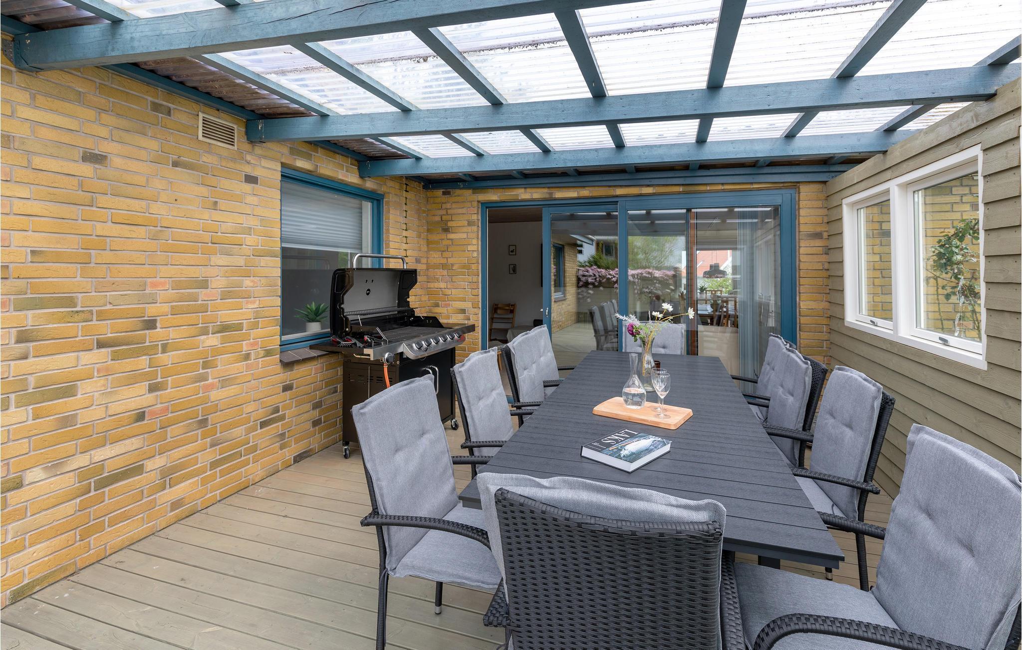 Feriehusets udendørsområde indbyder til mange glade timer i det fri. Nyd solen på terrassen, mens jeres børn render rundt på ejendommen, og afslut en dejlig dag med et måltid fra grillen.