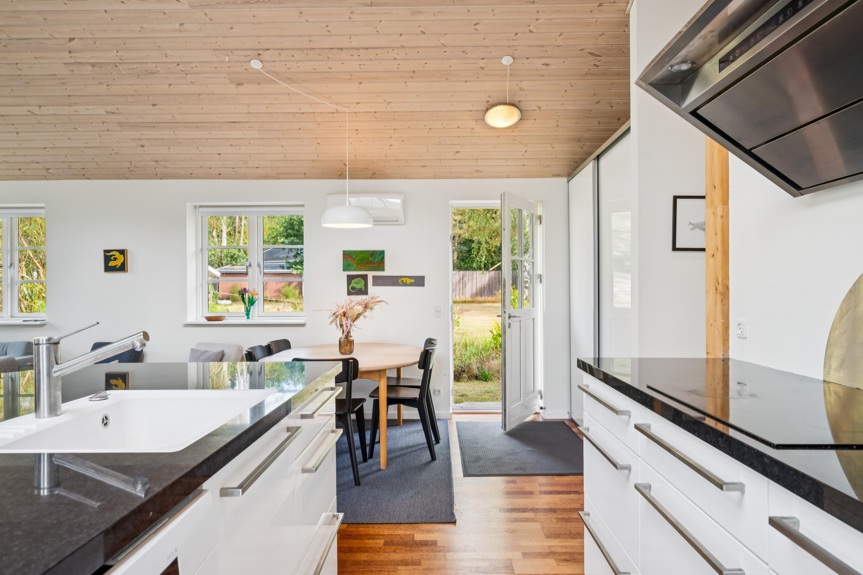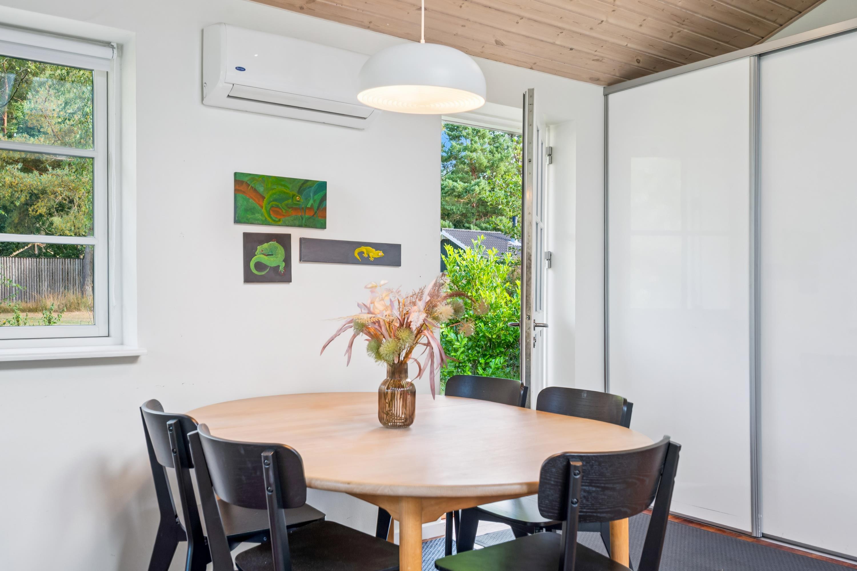 I den smukke natur på Midtdjursland finder man dette hyggelige og velholdte feriehus. Her finder man et flot køkken med b.la. opvaskemaskine og en dejlig spiseafdeling og hvorfra der er udgang til en overdækket terrasse med havemøbler og grill. Mindre, men hyggelig opholdsafdeling med gode møbler. Flot badeværelse med bruseniche, gulvvarme og vaskemaskine. Husets sovepladser finder man i to værelser, heraf det ene værelse med en dobbeltseng og et værelse med en køjeseng. De sidste tre sovepladser findes i det flotte og rummelige anneks som også har eget badeværelse. Huset er beliggende på en skøn grund med stor græsplæne, velegnet til leg og udendørsaktiviteter. Her er desuden både en bålplads og en trampolin.