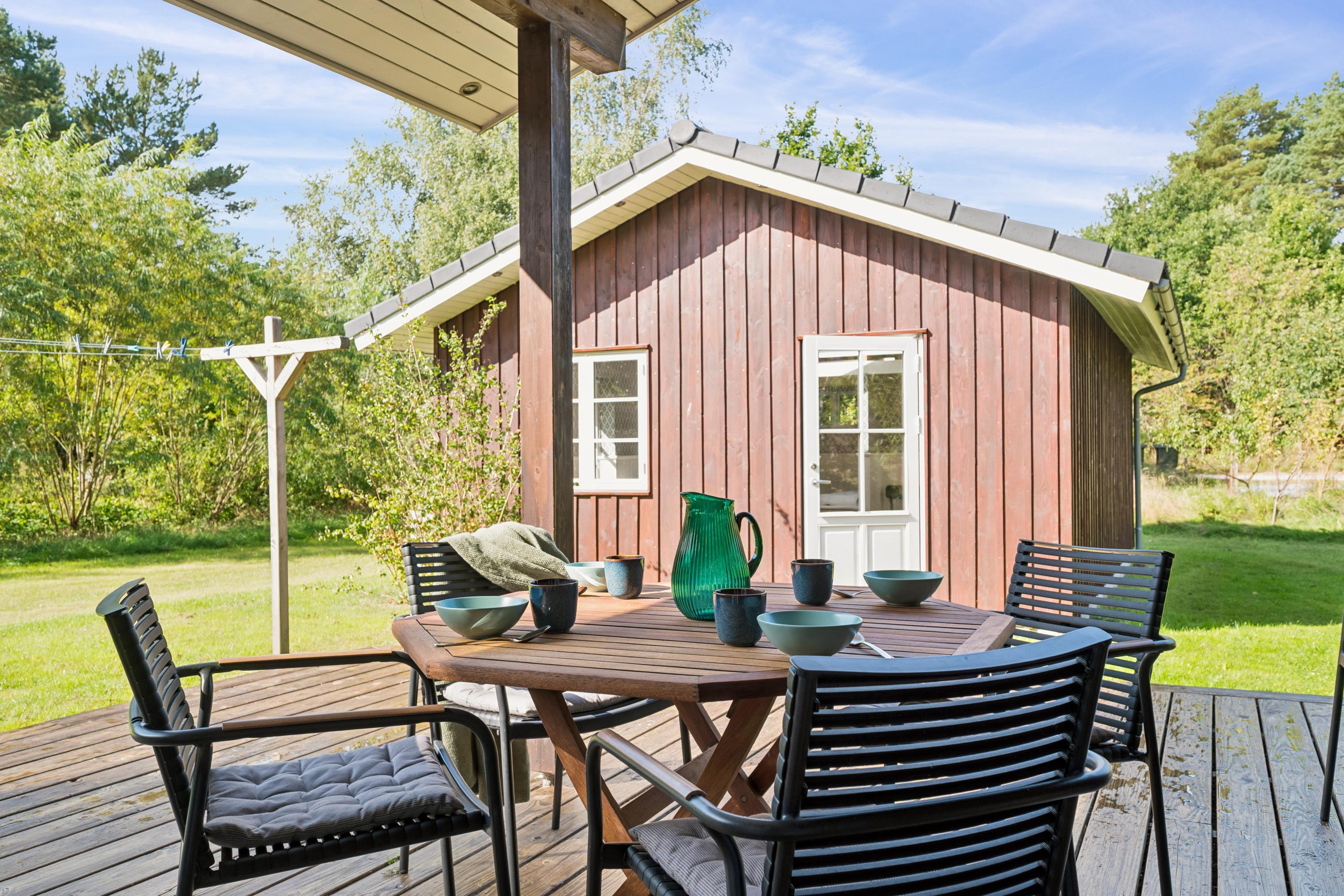 Hyggeligt feriehus med bålplads og terrasse