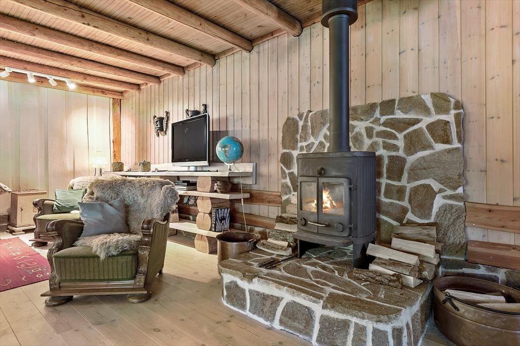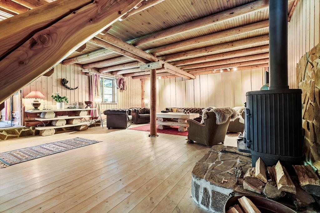 Stuen er meget stor og halvdelen af grundplanen er lavet til en hems for voksne, hvor der er en meget stor seng og rigtig god plads til at sætte sig med en god bog og læse i fred og ro.
