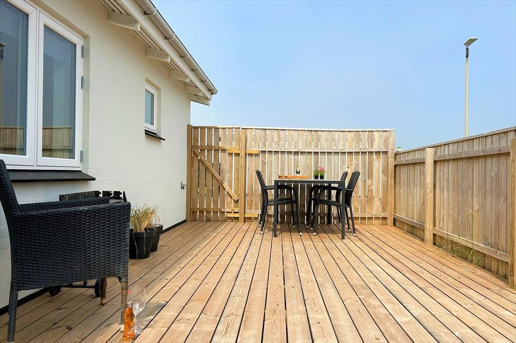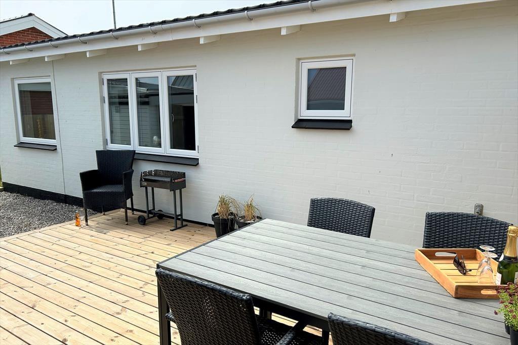 Huset ligger på en mindre, nem grund med en hyggelig terrasse, hvor I kan nyde morgenkaffen, solens varme stråler eller en afslappet grillaften. Terrassen byder på læ og sol det meste af dagen, perfekt til afslapning i fredelige omgivelser. Lige udenfor døren kan I ofte høre bølgerne fra havet – en beroligende lyd, der minder jer om den smukke natur omkring jer. Er I glade for fiskeri, har I jeres eget skur med fiskerensebord og en ekstra fryser til dagens fangst, så I kan nyde havets friske gaver i jeres eget tempo. Her får I en ferie med både nærvær, natur og ægte maritim stemning – ideelt til at lade op og nyde livet ved vandet.