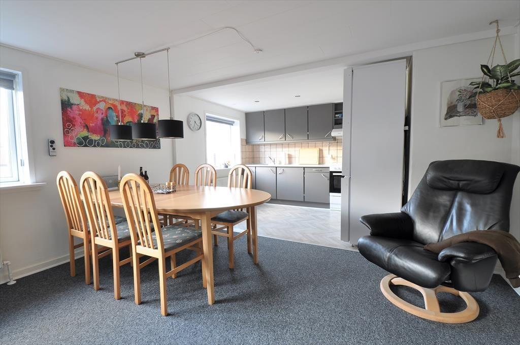 Drømmer I om en ferie med både charme, komfort og masser af muligheder for aktiviteter? Dette hyggelige, nyrenoverede byhus er det perfekte valg! Huset er lyst og moderne indrettet med stilfulde, komfortable møbler, der skaber en indbydende atmosfære, hvor I straks føler jer hjemme. Køkkenet er husets hjerte – åbent, rummeligt og fuldt udstyret, så I kan tilberede lækre måltider og samles omkring spisebordet til hyggelige stunder. Fra køkkenvinduet kan I nyde udsigten mod vest til de imponerende klitter – en skøn påmindelse om den nærliggende natur. Når vejret driller, eller I ønsker lidt indendørs sjov, kan I frit benytte multihallen i Sdr. Nissum under hele jeres ophold. Her kan I spille badminton, squash, bordfodbold, pool og benytte det veludstyrede fitnesscenter – alt sammen inkluderet i lejen! Jeres firbenede ven er også hjerteligt velkommen for et mindre tillæg. Huset skaber rammerne for en ferie, hvor både aktivitet og afslapning går hånd i hånd.