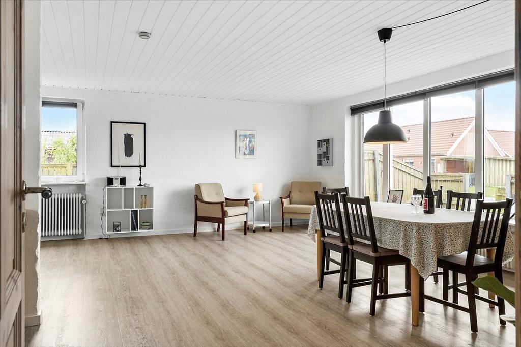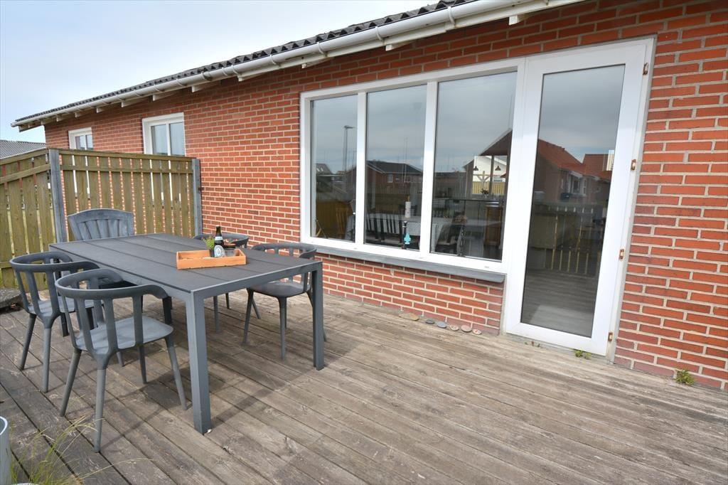 Fra det lyse køkkenalrum er der direkte adgang til husets dejlige, sydvendte træterrasse. Her kan I starte dagen med morgenmad i solen, nyde en rolig stund med en bog eller samles til aftenhygge omkring grillen. Terrassen har både læ, komfortable havemøbler og masser af sol det meste af dagen – et perfekt sted at trække vejret dybt, nyde den friske Vesterhavsluft og mærke roen sænke sig. Det bliver uden tvivl jeres yndlingssted under ferien – et sted, hvor de bedste minder skabes i det fri og i godt selskab.
