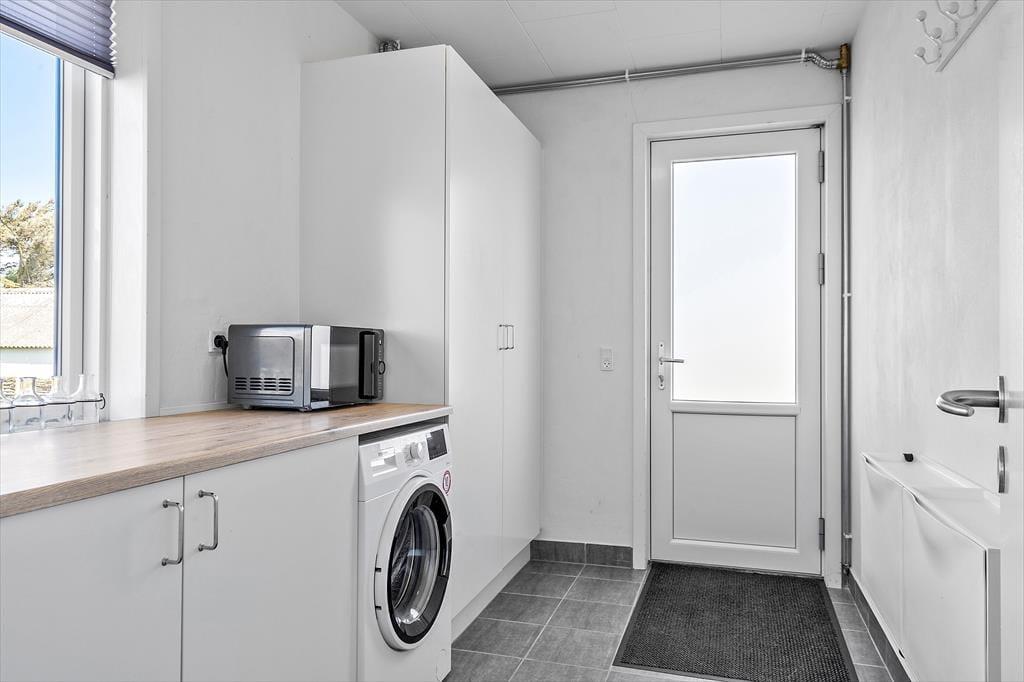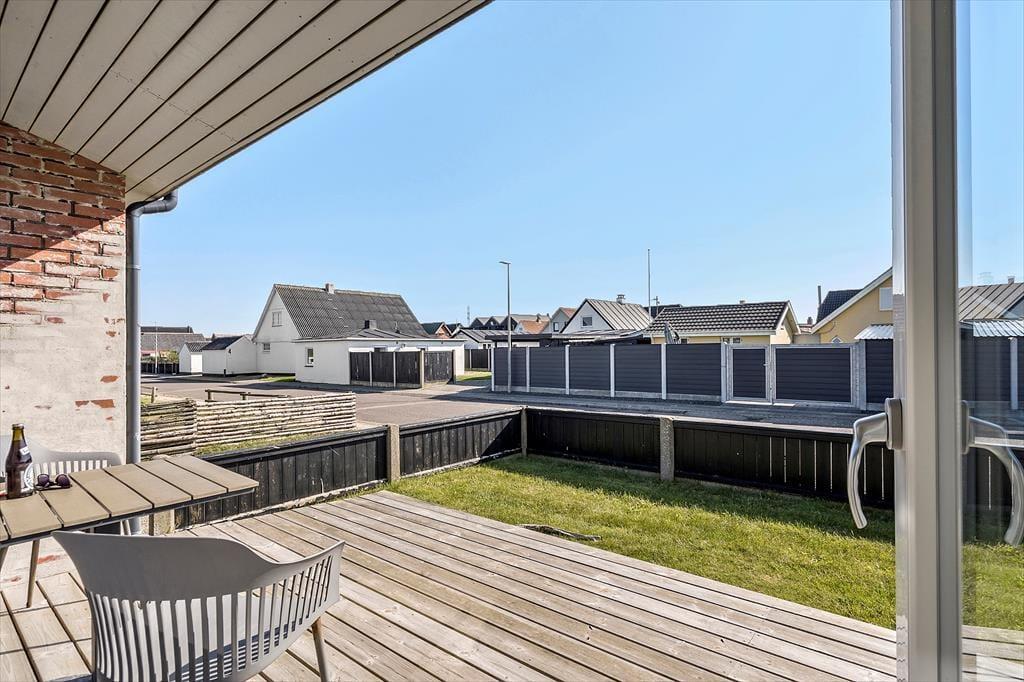 Fra stuen træder I ud på en dejlig sydvendt træterrasse, hvor I kan nyde solen fra morgen til aften – perfekt til grillmiddage eller en stille stund med en god bog. Udhus, hvor fiskestængerne og de medbragte cykler kan sættes ind.