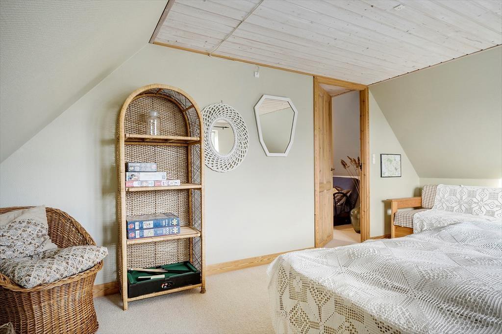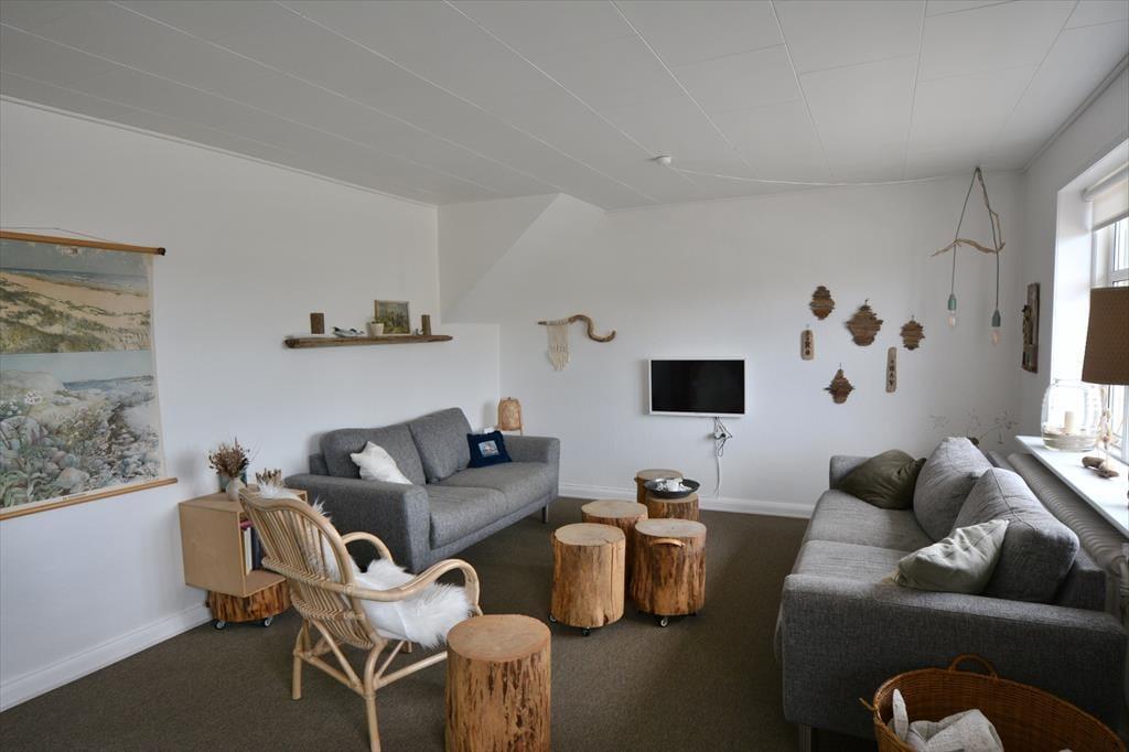 Træd indenfor i dette skønne feriehus hvor I bliver mødt at flotte detaljer, som emmer af natur, ro og fred. Den skønne stue ligger i åben forbindelse til køkkenet hvilket er med til at skabe en dejlig rumlighed og samtidig gør det muligt for jer at nyde hinandens selskab, men I kan også lukke døren i, og udfolde jeres kulinariske evner i ro og mag. Den dejlige stue ligger op til mange hyggelige timer sammen, her kan I spille et spil kort, læse en god bog eller blot se en god film i fjernsynet, ja mulighederne er mange.