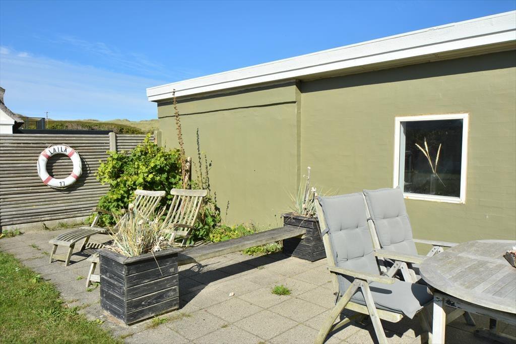 Det skønne feriehus ligger godt placeret på en skøn grund hvor der er mulighed for at nyde den friske havluft, hører fuglene kvidre eller blot nyde solens stråler. Den skønne græsplæne gør det muligt for jer at nyde en fodboldkamp familien imellem, og når sveden er kommet frem på panden kan I sætte jer godt tilrette på den skønne terrasse og nyde det danske sommervejr. Når aftensmaden skal nyde kan I tage det med ud på den vestvendte terrasse og se himlen skifte farve i takt med at solen går ned i det fjerne.