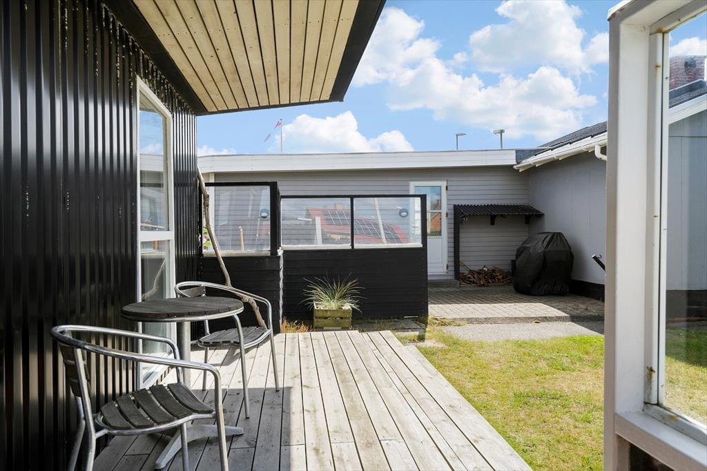 Rundt om huset finder I hele to terrasser, så I kan nyde både morgen- og eftermiddagssolen. Havemøblerne indbyder til måltider under åben himmel eller bare en stille stund i den friske Vesterhavsluft. Den lukkede have med sit charmerende stakit giver jer privatliv og ro – de perfekte rammer til at slappe af udendørs.