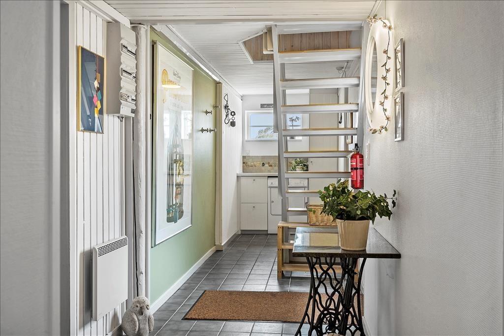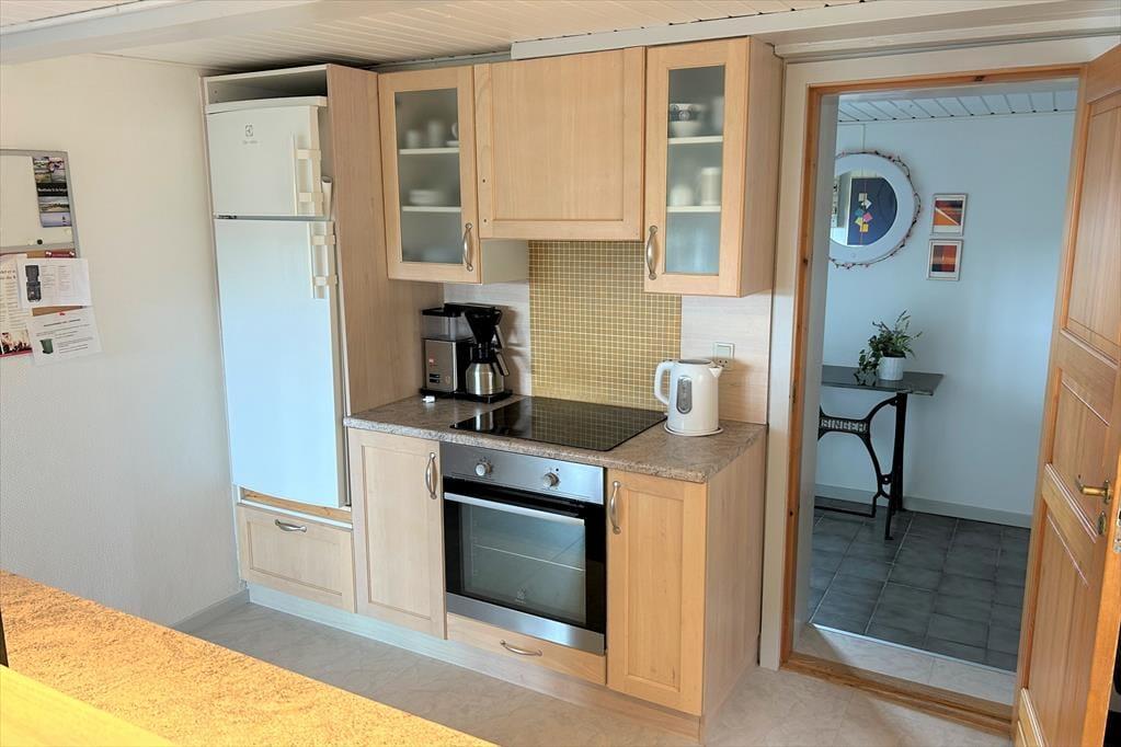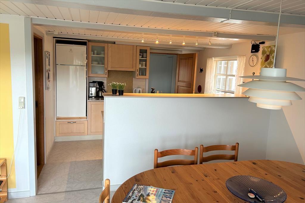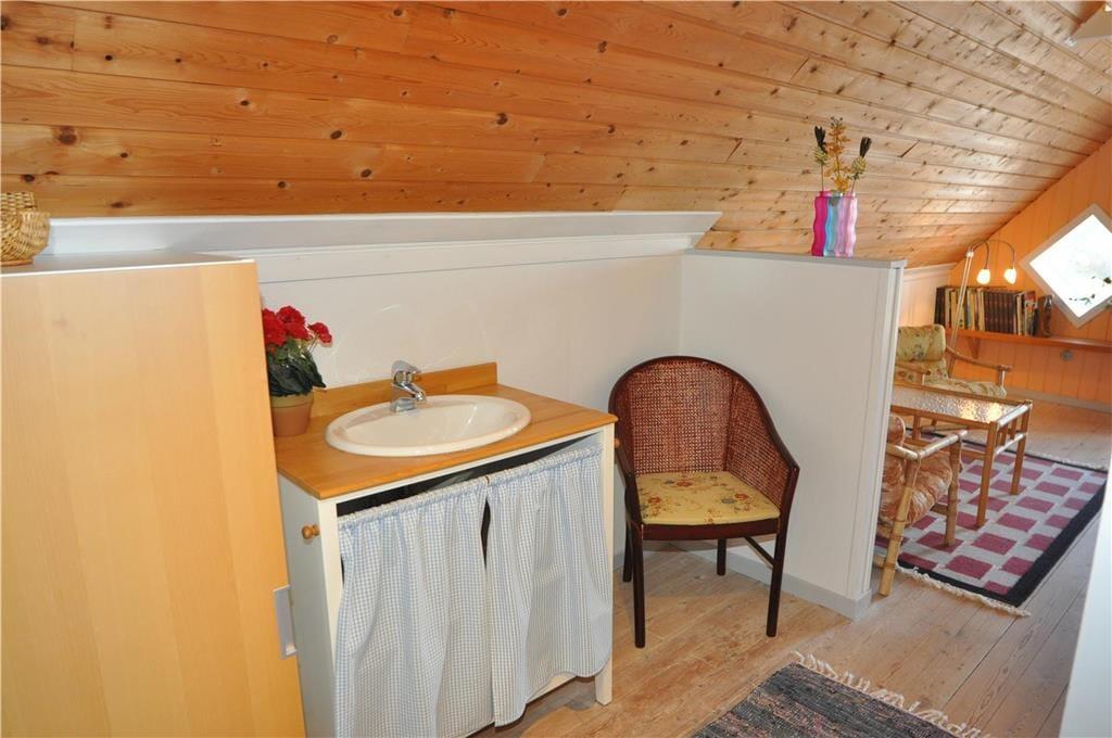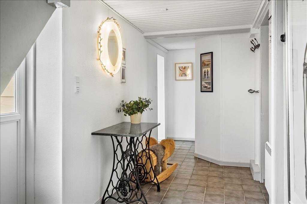 Dette dejlige feriehus byder jer velkommen med en lys og venlig indretning, hvor I straks vil føle jer hjemme. Møblerne er pæne og komfortable, og skaber en hyggelig atmosfære, der indbyder til afslapning og samvær. I stueplan træder I ind i en rummelig entre med trappeopgang til førstesalen. Badeværelset er lyst og indbydende med bruseniche og et smukt ovenlysvindue, der lader det naturlige lys strømme ind og skaber en skøn stemning.