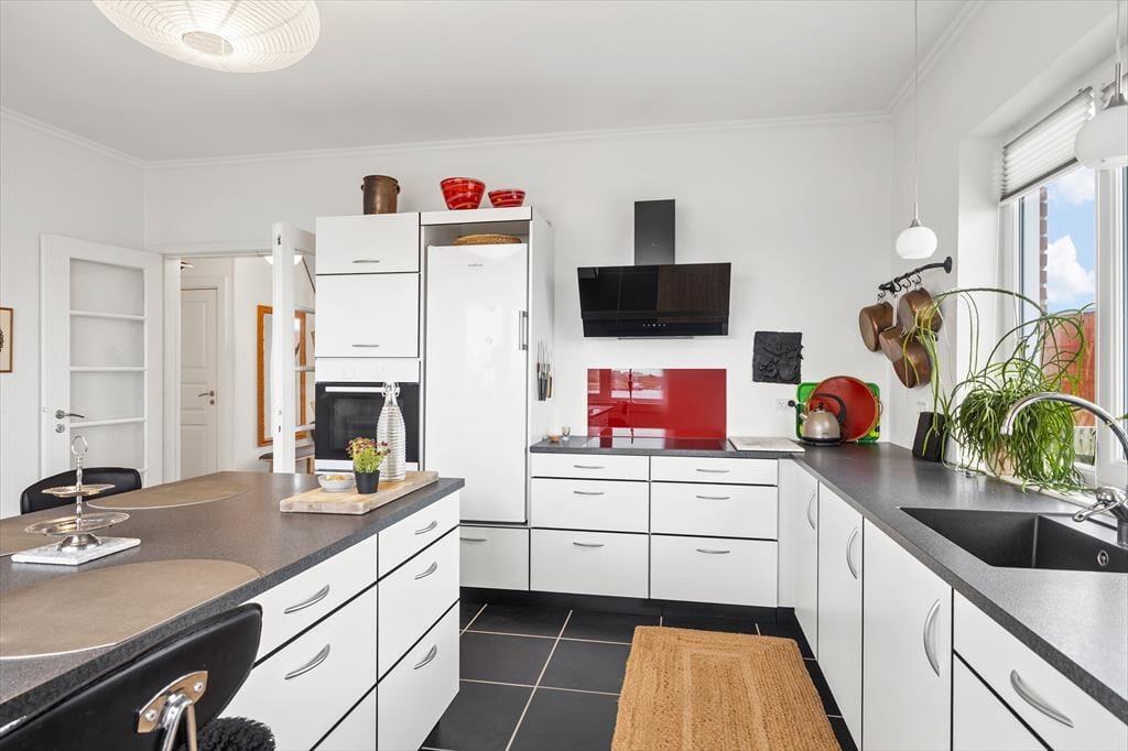 Haven er belagt med fliser, så I får en kæmpe, lukket terrasse, der er ideel til solrige eftermiddage, hyggelige grillaftener eller bare ren afslapning. På første sal venter tre charmerende balkoner – alle med smuk udsigt – og fra stuen kan I træde direkte ud på endnu en balkon i forlængelse af spisestuen. Omme på den anden side af vejen ligger det brusende Vesterhav, hvor I kan gå lange strandture, dyppe tæerne eller bare nyde havets friske duft.