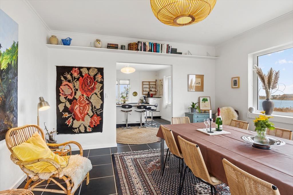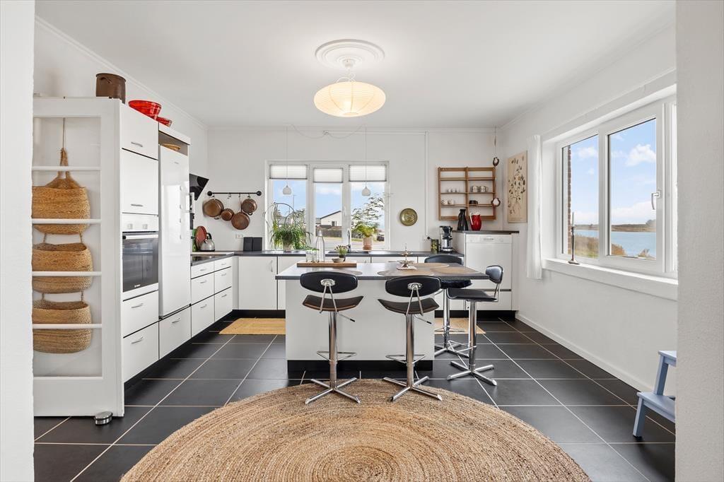 Dette skønne og rummelige feriehus i Thorsminde byder på hele tre etager fyldt med hygge, komfort og enestående udsigt. Fra det store, åbne køkken og den lyse spisestue kan I nyde det storslåede panorama over fjorden – og fra husets øverste etage kan I endda se helt til Vesterhavet. Overalt er der små kroge, hvor man kan finde ro med en god bog eller en kop kaffe. I kælderen er der et praktisk bord til rensning af fisk, perfekt til dagens fangst, hvis I har været ude at lystfiske.